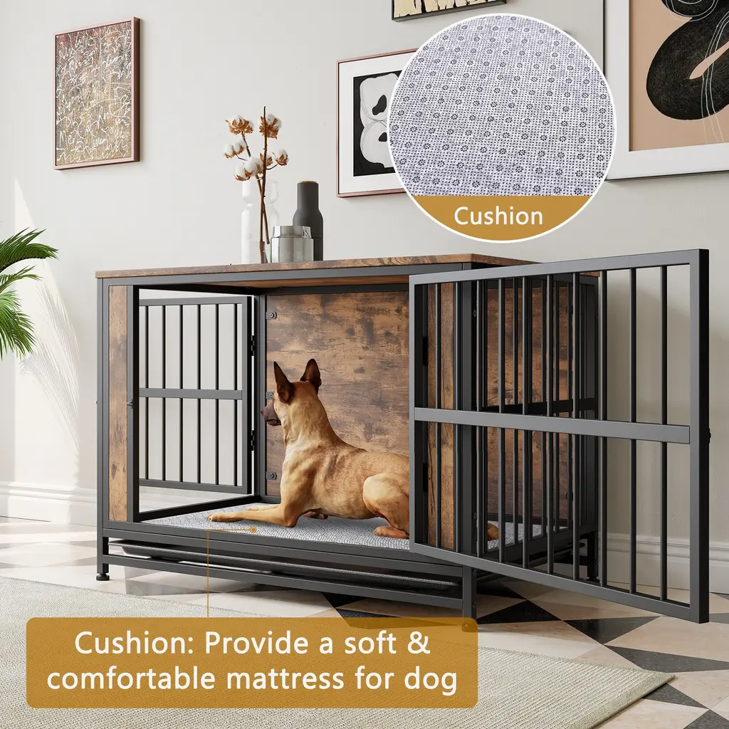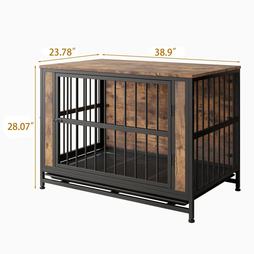 Dog Crate Furniture With Metal Frame & Pull-Out Tray - Stylish Indoor Dog Kennel With 2 Doors - Brown - 38.9"l*23.78"w"*28.07"h