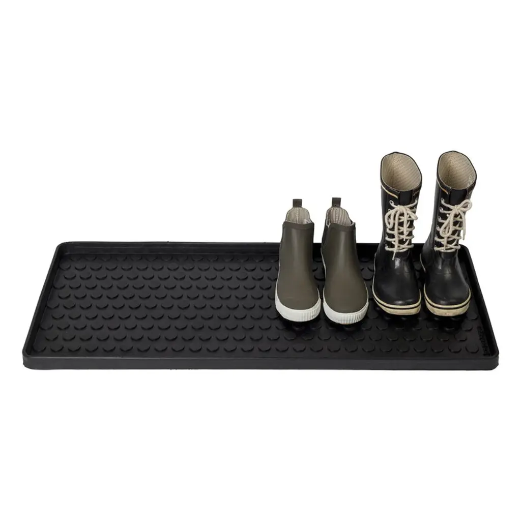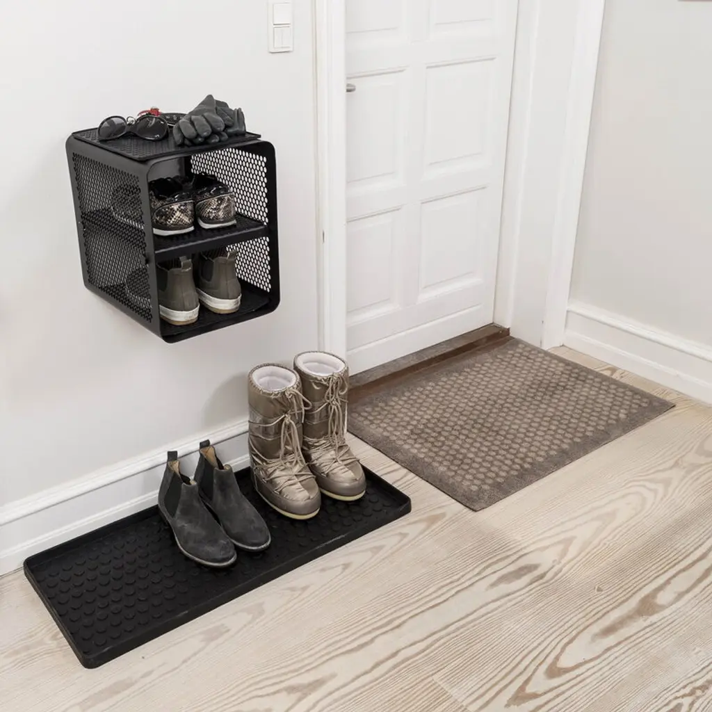 Tica Copenhagen's Dot shoe tray is a beautiful and practical addition to both the hallway and even outdoors – the sturdy rubber mat is designed for both indoor and outdoor use. The Dot shoe mat keeps wet and muddy shoes in check and the hallway clean – the large shoe tray can hold four pairs of adult shoes or several pairs of kids’ shoes at once. The clever tray is also perfect for drying out wet accessories of all sorts from umbrellas to doggy leashes. Made of dense rubber the Dot shoe mat stays firmly in place on all types of surfaces and is easy to clean by vacuuming or rinsing.