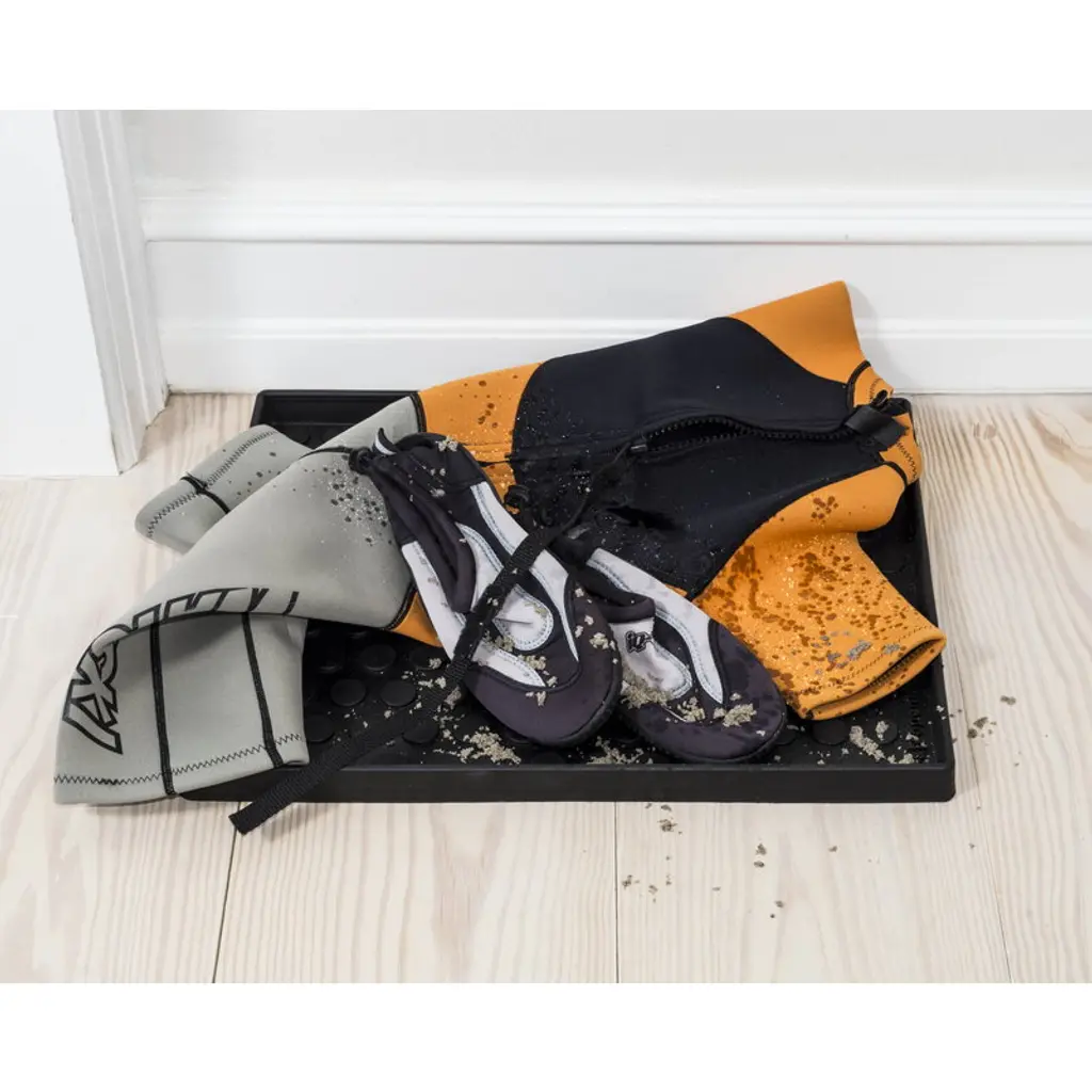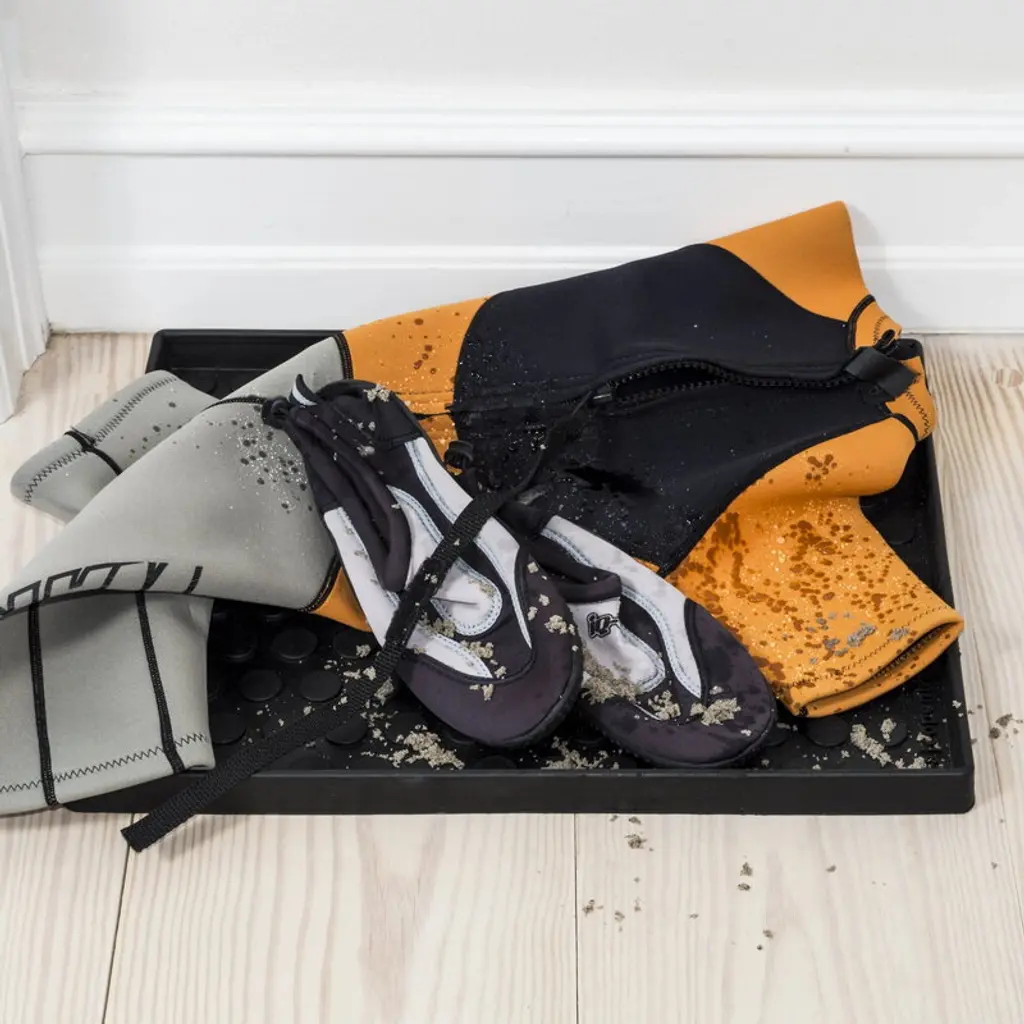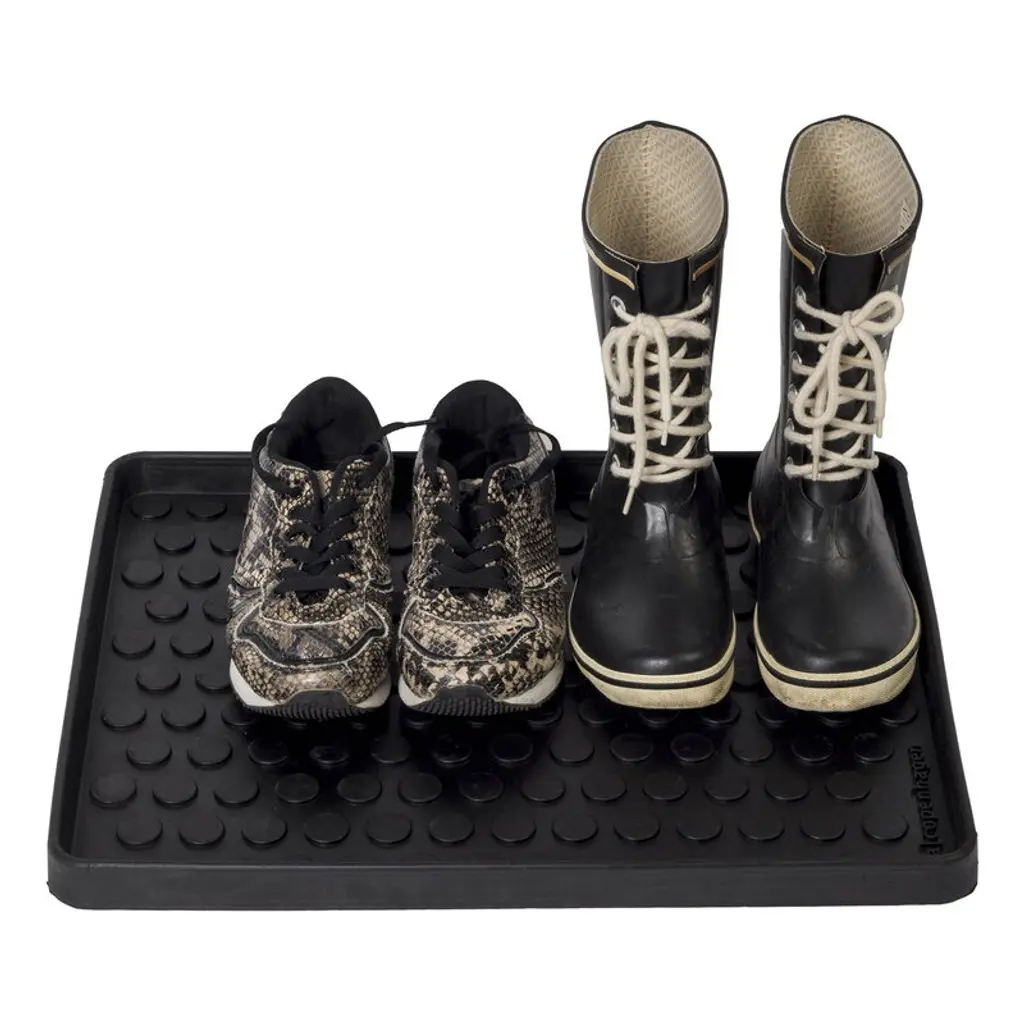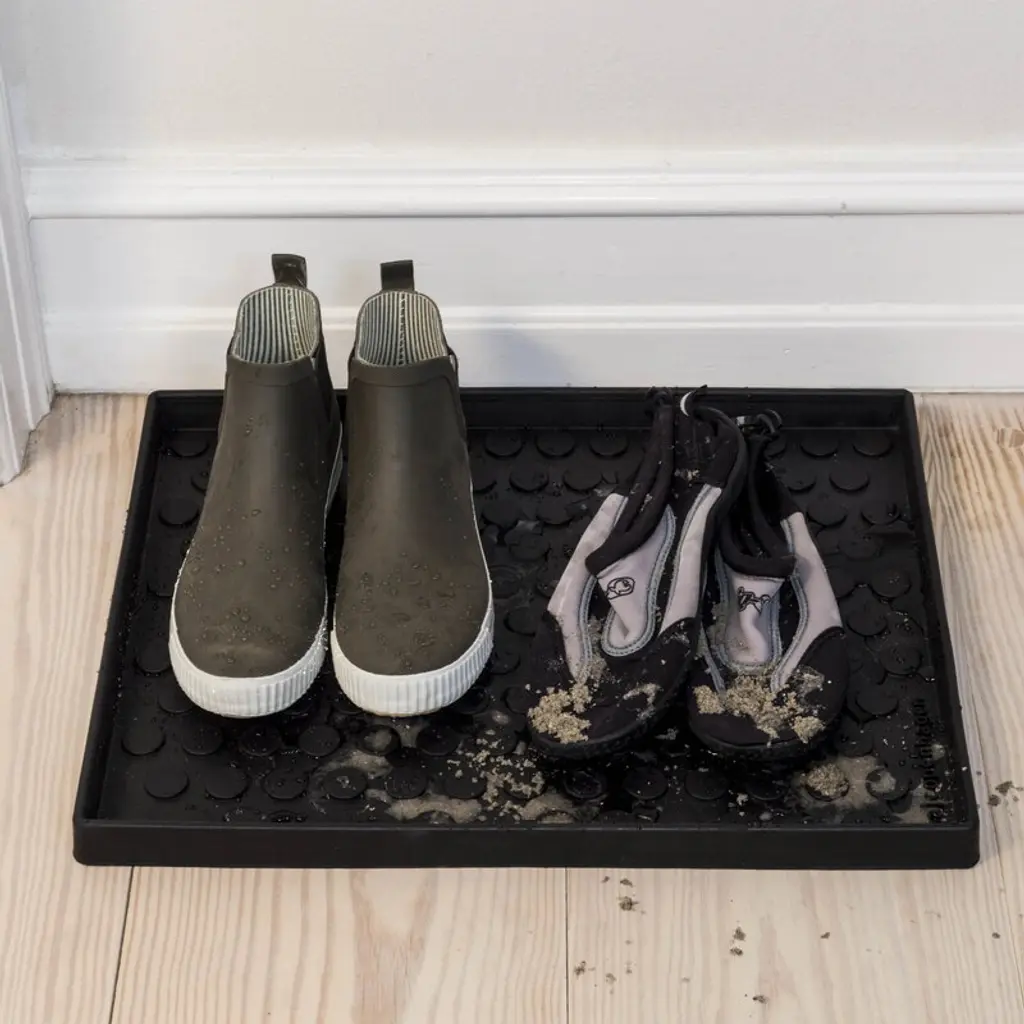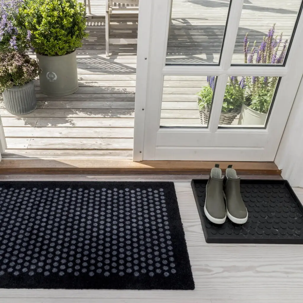Tica Copenhagen's Dot shoe tray is a beautiful and practical addition to both the hallway and even outdoors – the sturdy rubber mat is designed for both indoor and outdoor use. The Dot shoe mat keeps wet and muddy shoes in check and the hallway clean – the medium size shoe tray can hold two pairs of adult shoes or up to four pairs of kids’ shoes at once. The clever tray is also perfect for drying out wet accessories of all sorts from umbrellas to doggy leashes. Made of dense rubber the Dot shoe mat stays firmly in place on all types of surfaces and is easy to clean by vacuuming or rinsing.