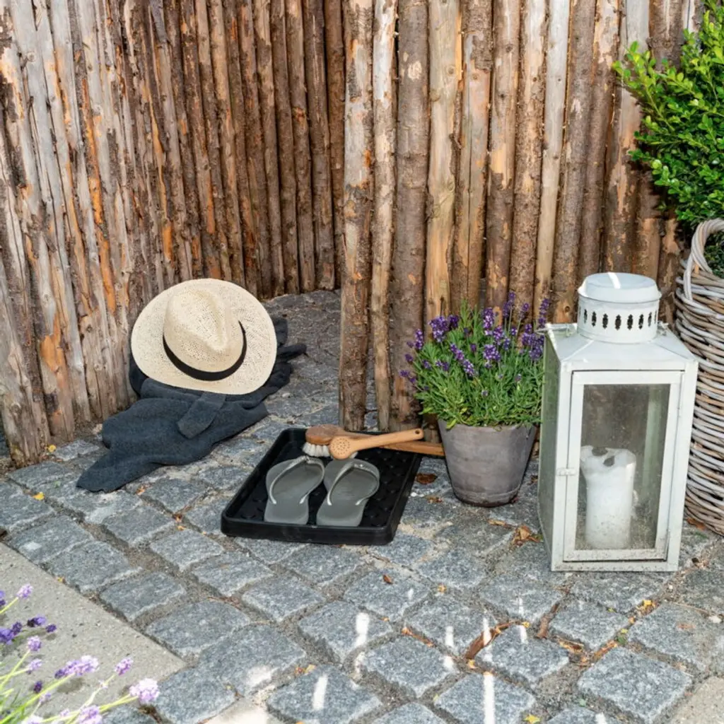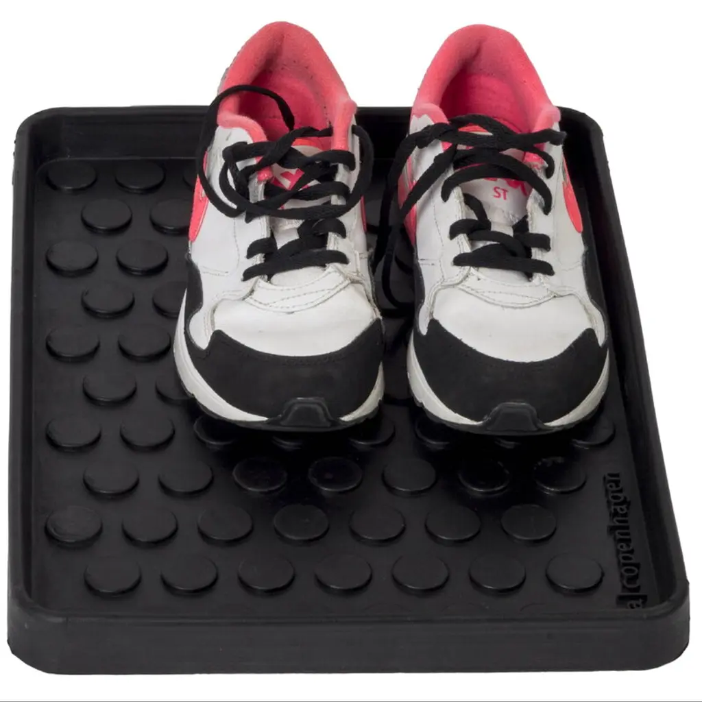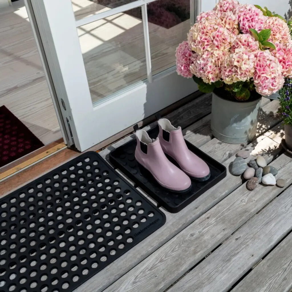 Tica Copenhagen's Dot shoe tray is a beautiful and practical addition to both the hallway and even outdoors – the sturdy rubber mat is designed for both indoor and outdoor use. The Dot shoe mat keeps wet and muddy shoes in check and the hallway clean – the small shoe tray can hold one pair of adult shoes or two pairs of kids’ shoes. The clever tray is also perfect for drying out wet accessories of all sorts from umbrellas to doggy leashes. Made of dense rubber the Dot shoe mat stays firmly in place on all types of surfaces and is easy to clean by vacuuming or rinsing.