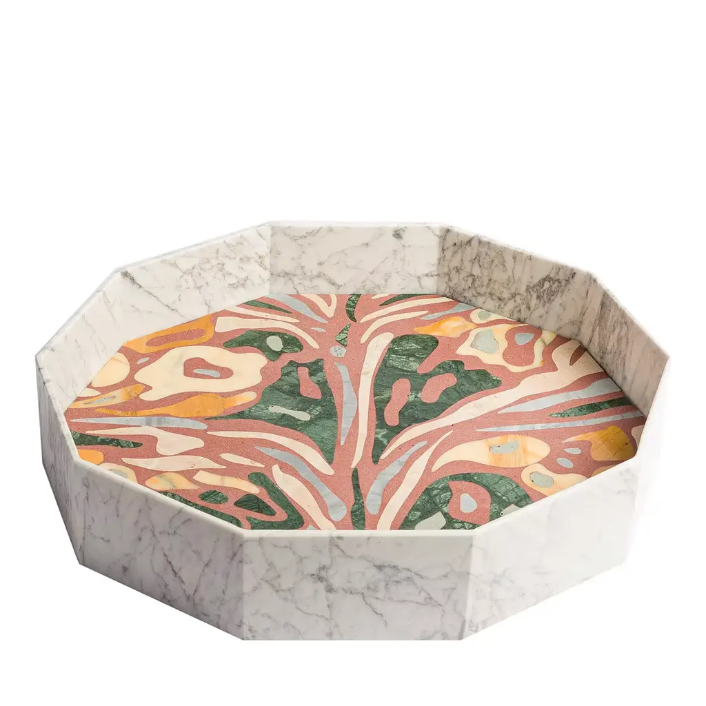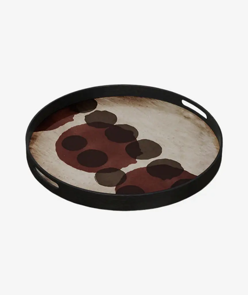 The Translucent Silhouettes collection of trays artfully layers organic dots atop an aged surface, creating a sense of depth and allowing dynamic combinations to blossom. While the overall result is bold, the collection possesses certain lightness conveyed by the delicate inks and pigments.