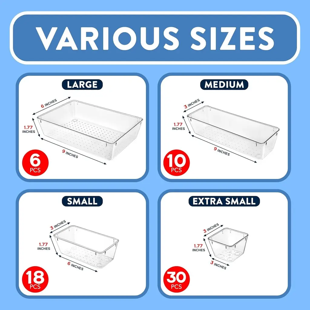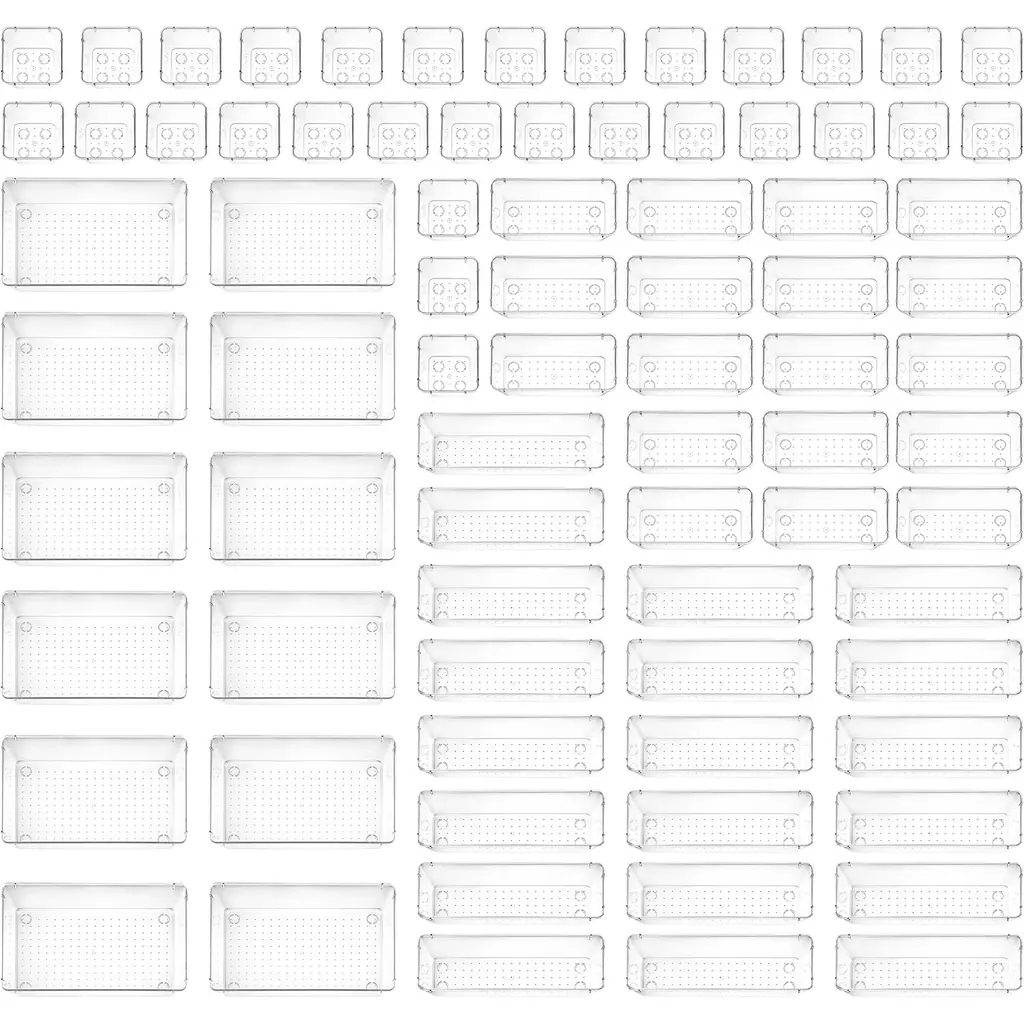 Drawer Organizer Set - Includes Stackable Storage Trays For Makeup, Kitchen, And Office, Packs - Pack Of 64