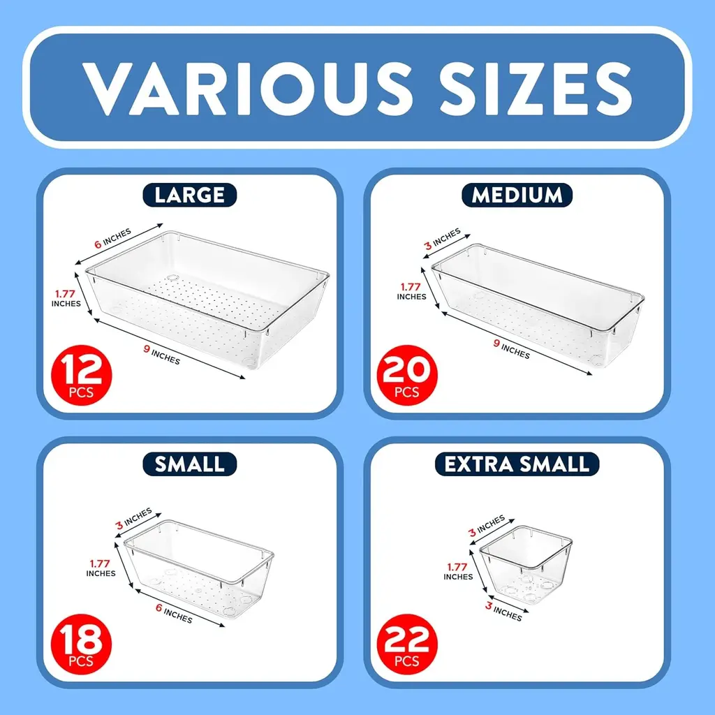 Drawer Organizer Set - Includes Stackable Storage Trays For Makeup, Kitchen, And Office, Packs - Pack Of 72