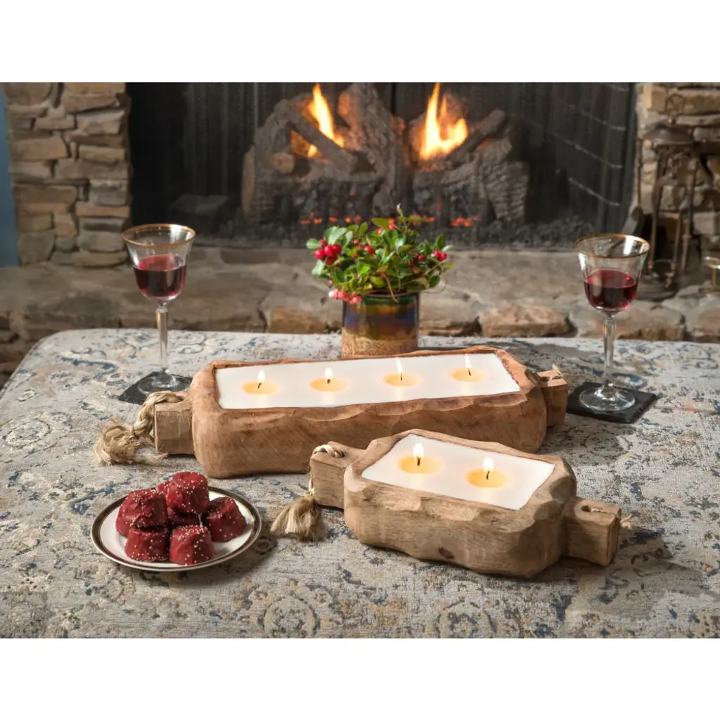 This candle is made from renewable mango wood that has been layered + sanded to create a beautiful frame. Boasting an earthy + organic vibe. It features a natural wax finish and a fitted lid and after the candle burns up use as decor! Available in various scents.