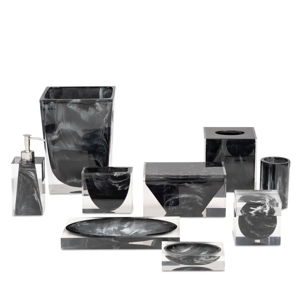 Kassatex's Ducale bath accessories collection simulates the natural patterns of marble with ink-injected resin, resulting in an understated and elegant look that optimally organizes your bathroom essentials.