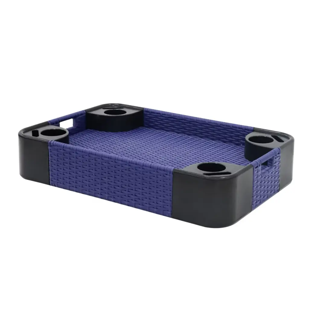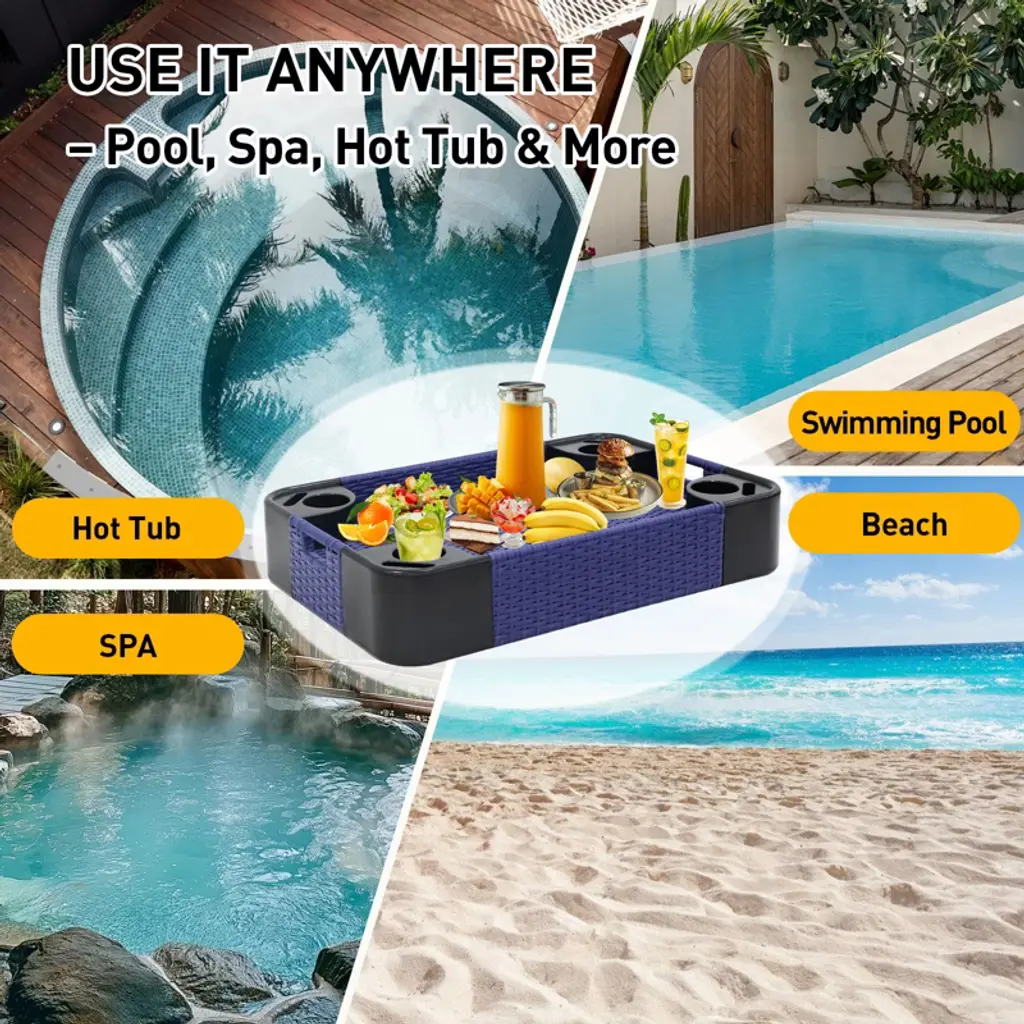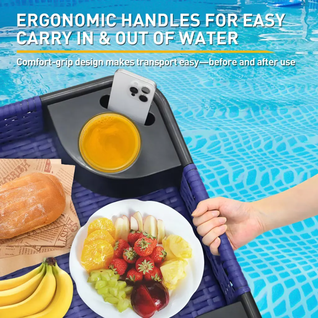 Eagle Peak Rectangular Floating Tray For Pool And Hot Tub Wicker Serving Tray With Handles & Cup, Large Floating Tray For Food & Drinks