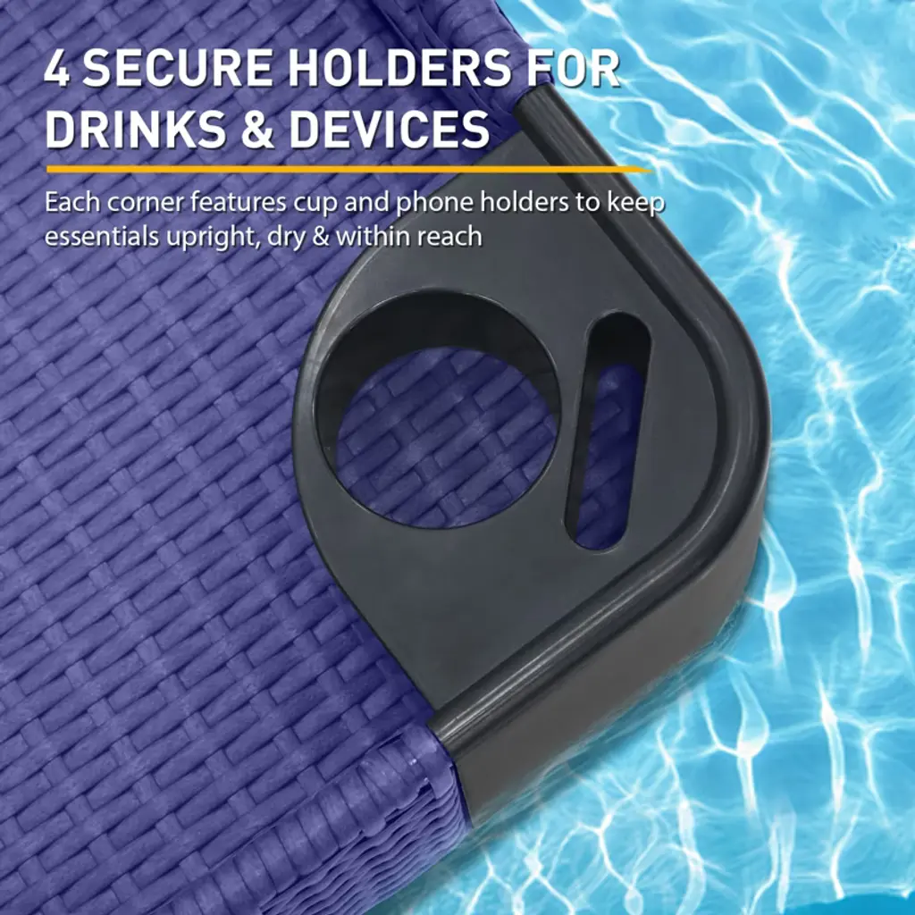 The EAGLE PEAK floating pool tray features a rust-proof aluminum frame, ensuring durability and long-lasting performance. It is made from high-quality, eco-friendly materials and uses custom foam filling technology, offering a sturdy and fade-resistant design. Unlike traditional inflatable trays, it provides stable support, even for heavier items, and maintains excellent balance on water. With its waterproof construction, the tray can be used reliably over time. Measuring 35.4 x 23.6 x 6.5 inches, it offers ample space for drinks and snacks, making it ideal for pool or lake gatherings.