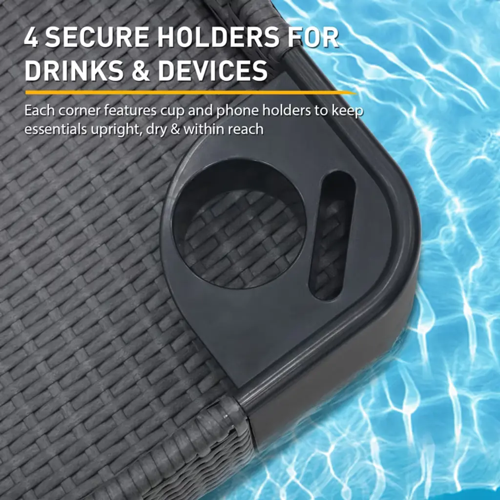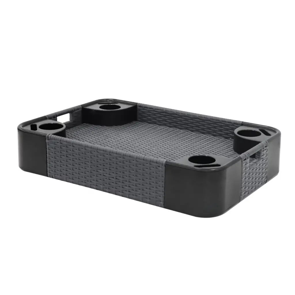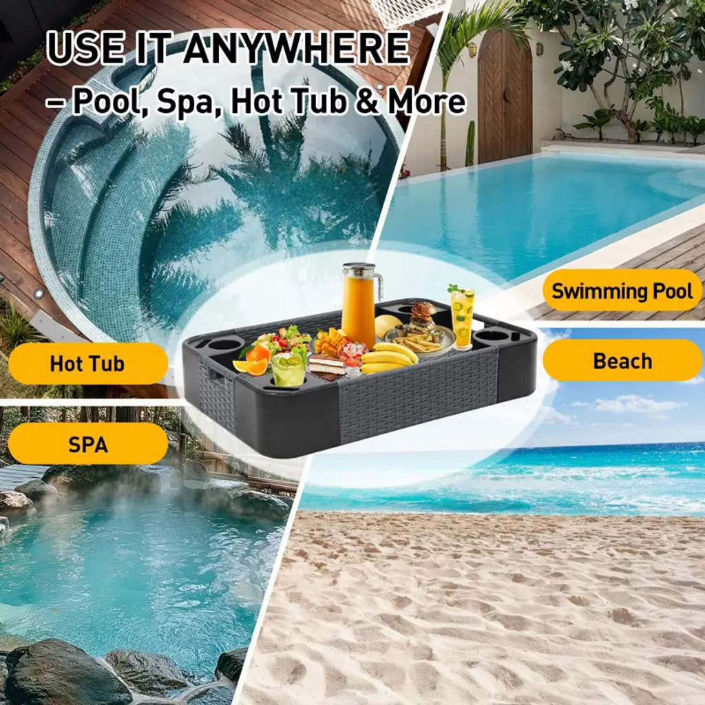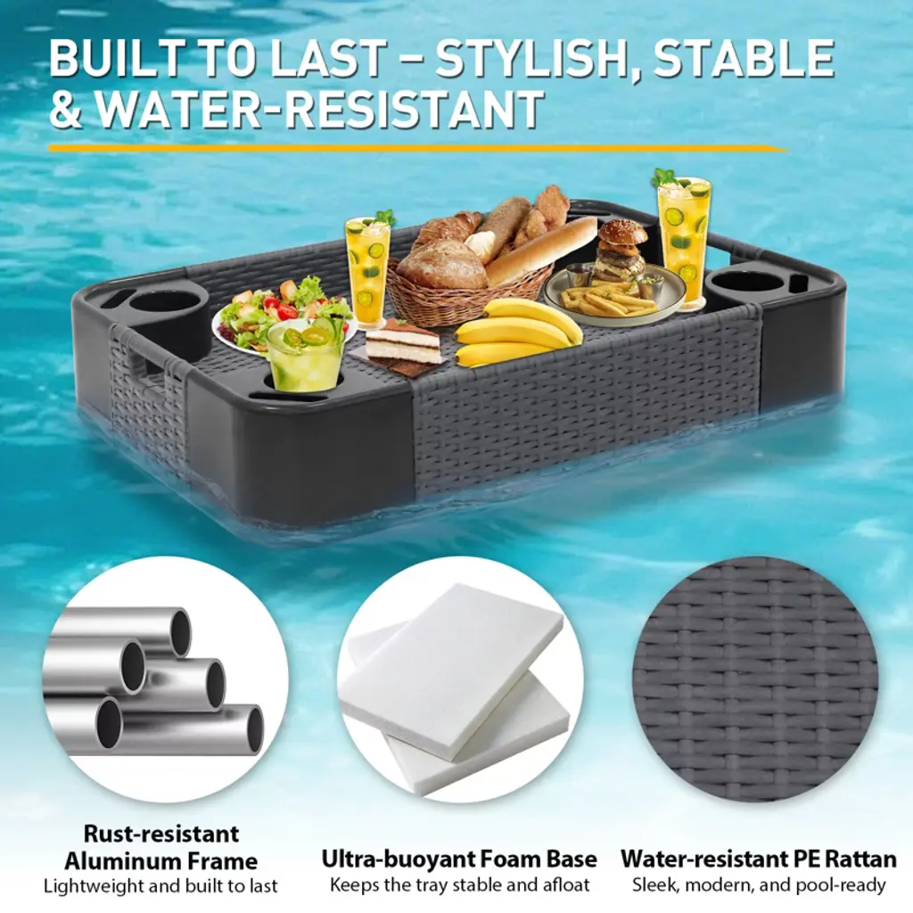 Eagle Peak Rectangular Floating Tray For Pool And Hot Tub Wicker Serving Tray With Handles & Cup, Large Floating Tray For Food & Drinks