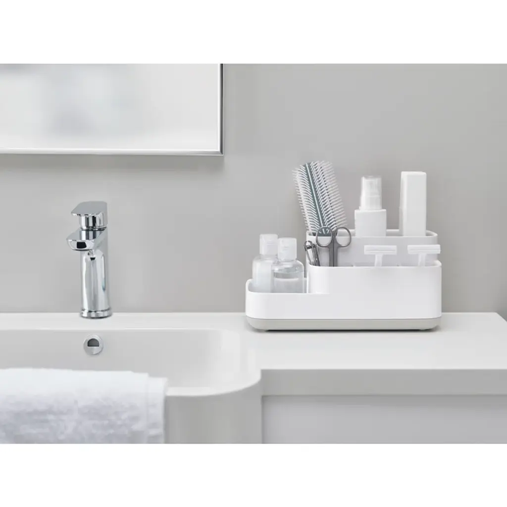 This versatile EasyStore Bathroom Storage Organizer Caddy has been designed to better organize your bathroom space. It’s divided into 5 compartments of varying sizes and depths to cope with storing the wide variety of toiletries and tools commonly found in most bathrooms. Perfect for keeping items such as moisturizers, lotions, scissors, brushes, deodorants, dental floss, razors, and makeup neat, tidy, and easy to find. Also features a non-slip base.