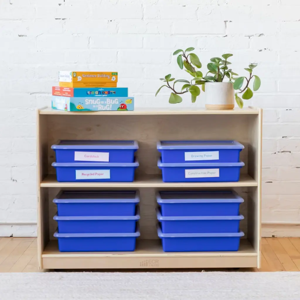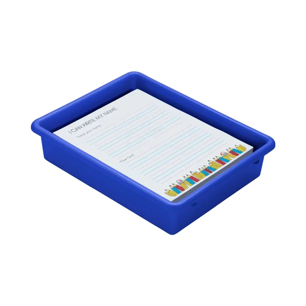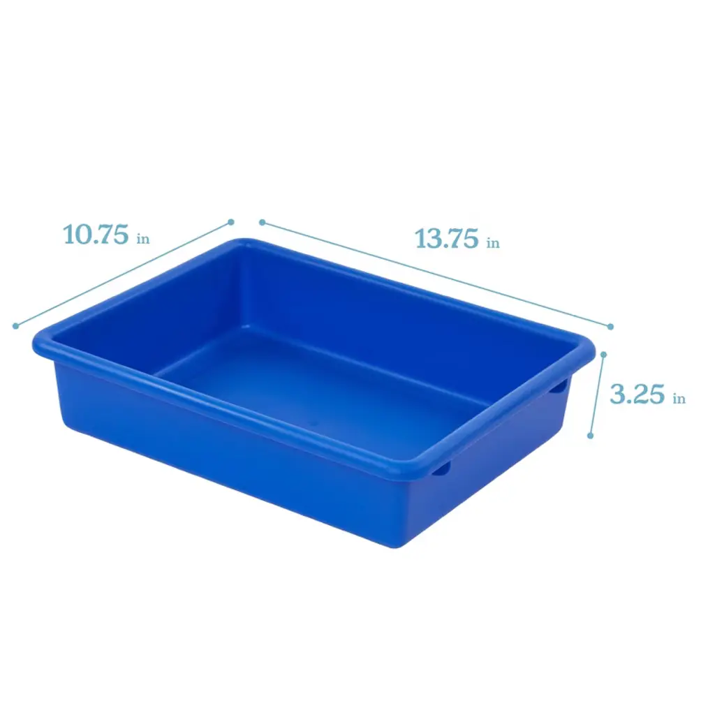 Foster an organized classroom environment with ECR4Kids Letter Size Trays with Lids. Perfect for early education spaces and homes, these small plastic storage containers with lids keep worksheets, assignments and other papers organized. This 10-pack of versatile stacking bins comes with lids to keep supplies contained and can hold papers sized up to 9" x 12". These sturdy plastic trays are great for keeping art supplies, schoolwork, handouts, and student papers neatly organized. Designed to store papers flat to resist creasing. The curved interior makes it easy to remove contents and non-snap lids make it convenient for children and adults to access supplies. Create custom storage organization and label bins to help identify contents such as “homework assignments”, colorful construction paper, or lined sheets. Introduce individualization in the classroom and personalize each student’s paper organizer with pocket labels for easy identification, sold separately. Rounded edges make the bins easy to pick up and carry for quick classroom transitions. When empty, bins can nest together, and be stacked vertically for space-saving storage. Made of durable plastic that is easy to clean. Designed for everyday use in classrooms and perfect for the home. Pair with additional ECR4Kids storage units to complete the space, sold separately.