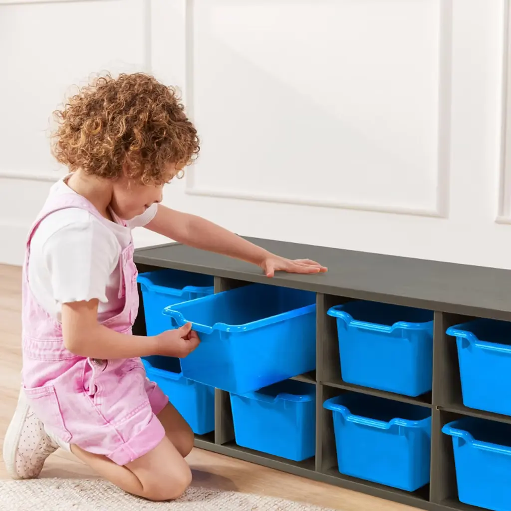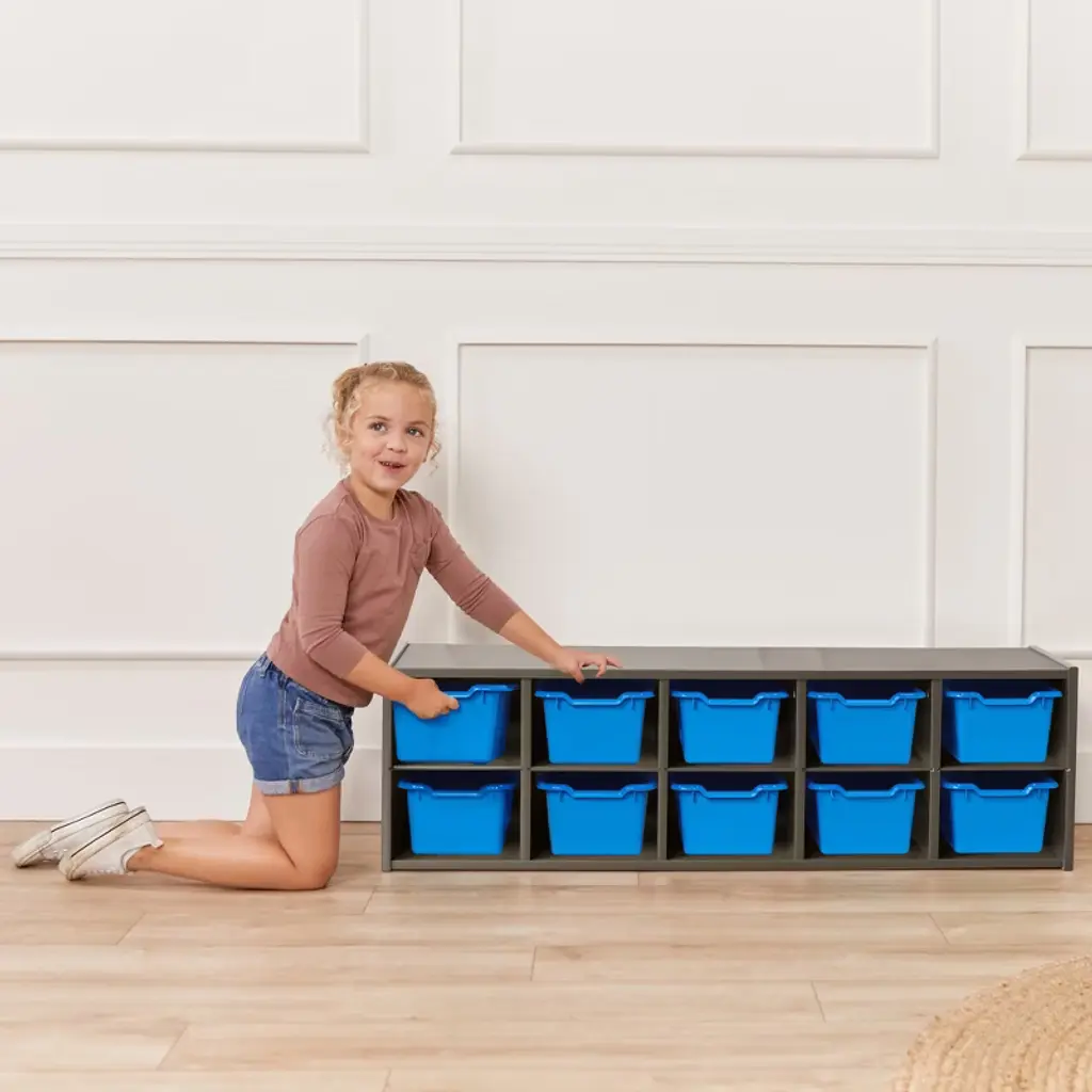 Ecr4kids Streamline 10 Cubby Tray Cabinet With 10 Scoop Front Storage Bins, 2X5, Grey Wash, Blue