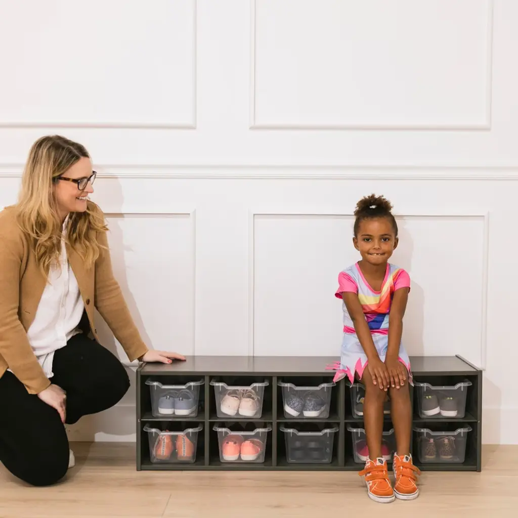 Keep your classroom uncluttered with the ECR4Kids Streamline 10 Cubby Tray Cabinet with Scoop Front Storage Bins. Ideal for small spaces, kids can organize and store toys, games, building blocks, and school supplies that may otherwise be forgotten. Designed to grow with little ones, this storage cabinet with bins helps parents, teachers, and educators keep small items within reach. Give children their own separate cubby at school to store art projects, homework, and personal belongings. Durable plastic bins feature rounded edges, an easy-to-grasp scoop front handle, and a curved interior to simply remove contents. Lightweight bins are easy to pick up and carry between activities. The low-profile open-face shelves encourage children to select their favorite activity independently and introduce organizational skills and clean up when playtime is over. Constructed from sustainably harvested birch plywood with a durable finish sealing the wood surface and resisting scratching. A UV inhibitor helps furniture resist ultraviolet light and yellowing. Natural birch plywood is extremely durable and will hold up to everyday use in an early childhood environment. Combine the Montessori storage with other ECR4Kids Birch Collection furniture pieces to complete the space.