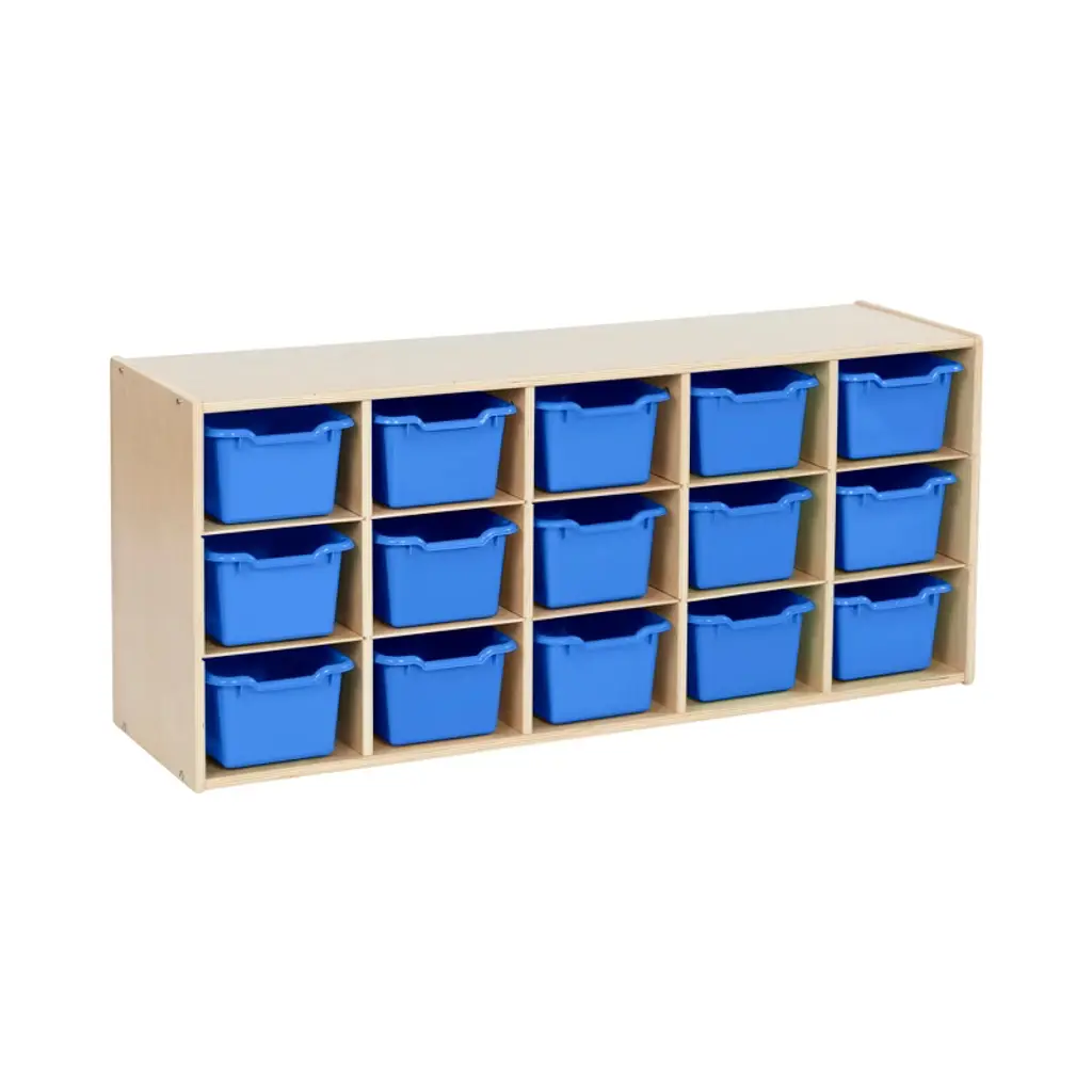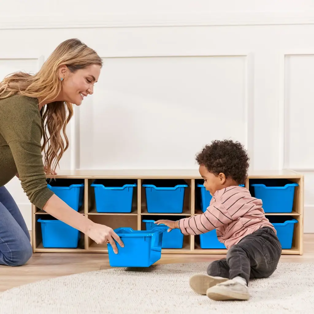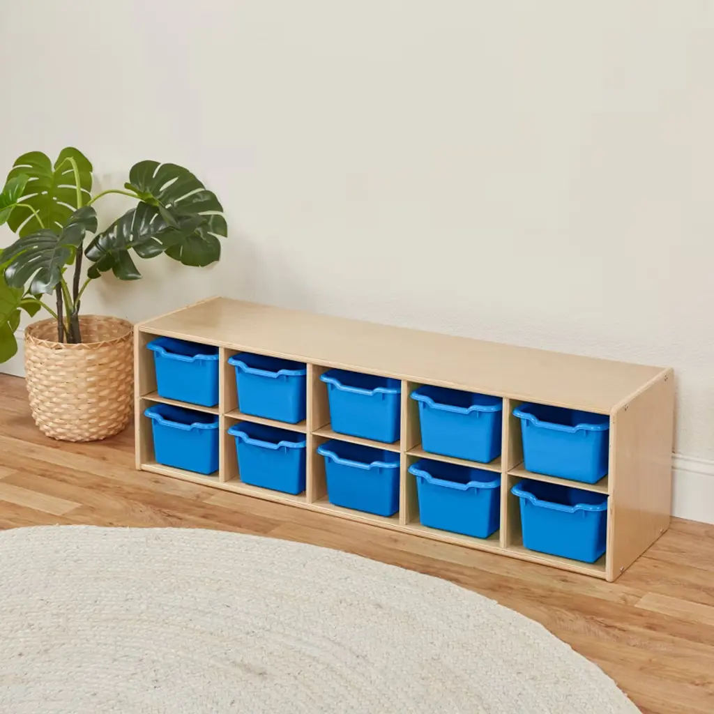 Ecr4kids Streamline 10 Cubby Tray Cabinet With 10 Scoop Front Storage Bins, 2X5, Natural, Blue