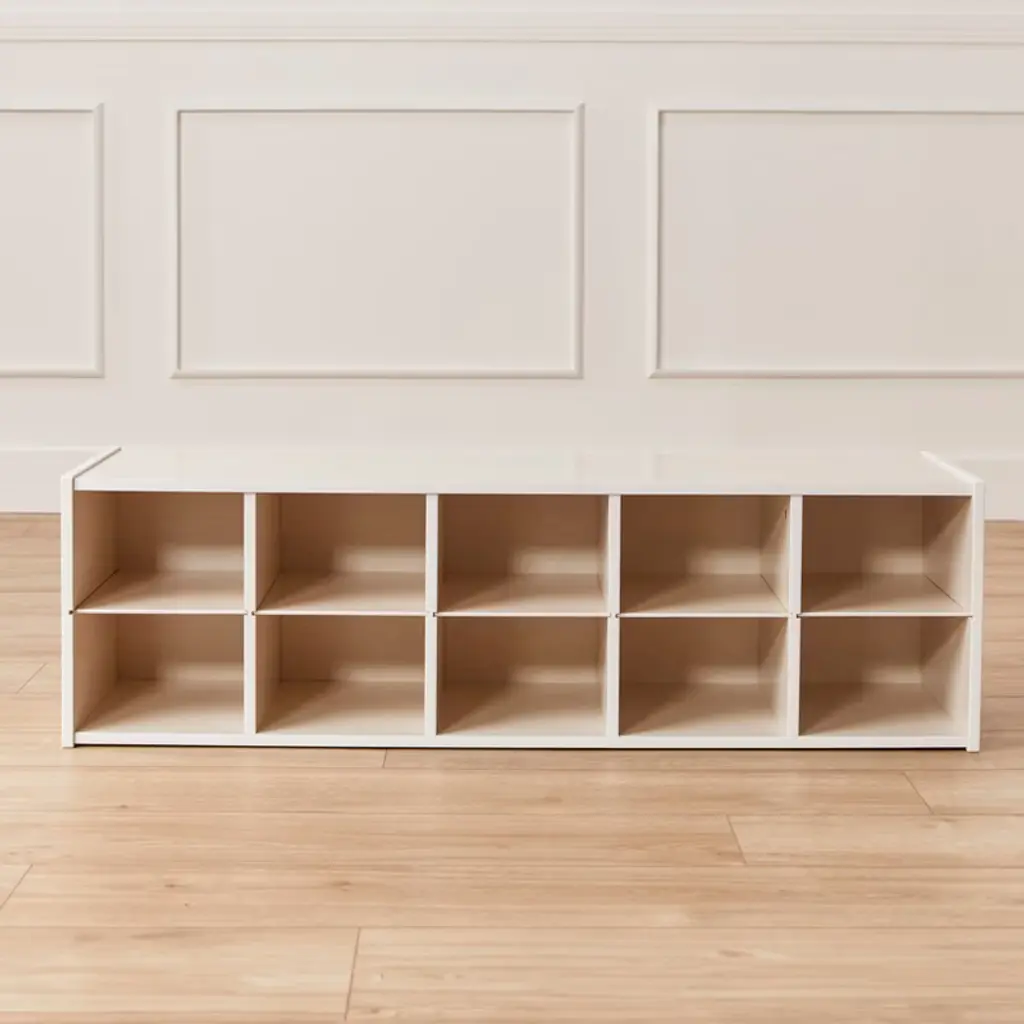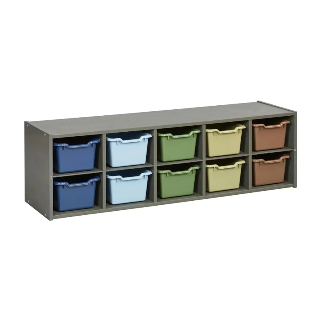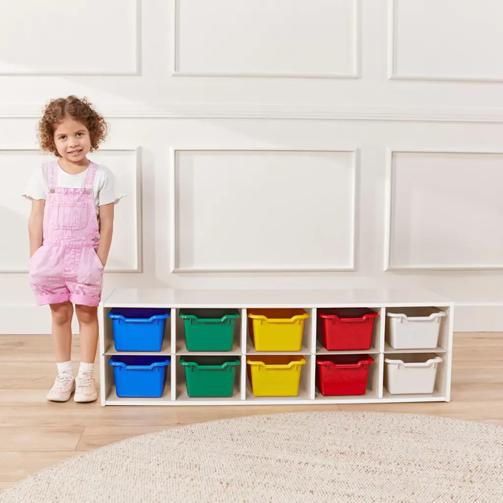 Ecr4kids Streamline 10 Cubby Tray Cabinet With 10 Scoop Front Storage Bins, 2X5, White Wash, Assorted