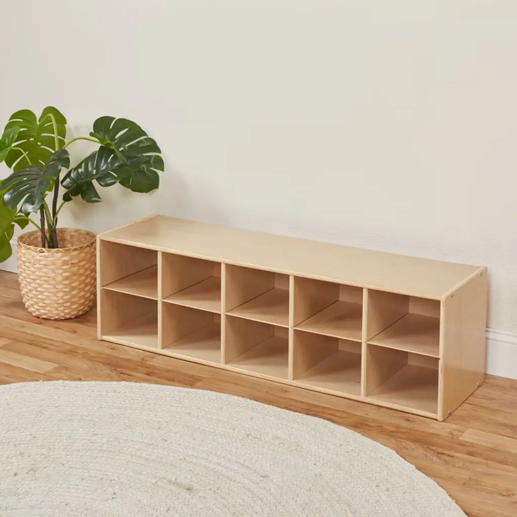 Ecr4kids Streamline 10 Cubby Tray Storage Cabinet, 2X5, Natural