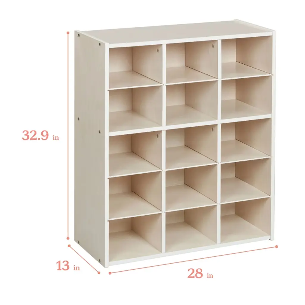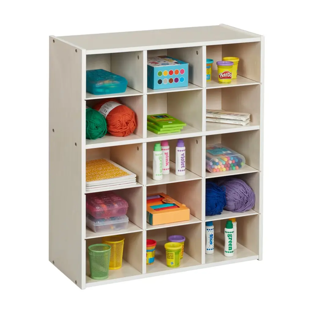 Ecr4kids Streamline 15 Cubby Tray Storage Cabinet, 5X3, White Wash