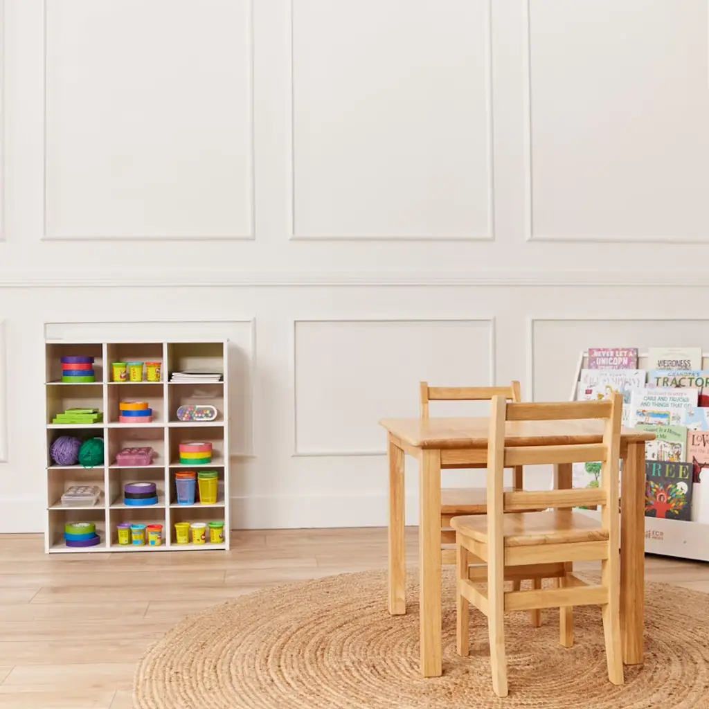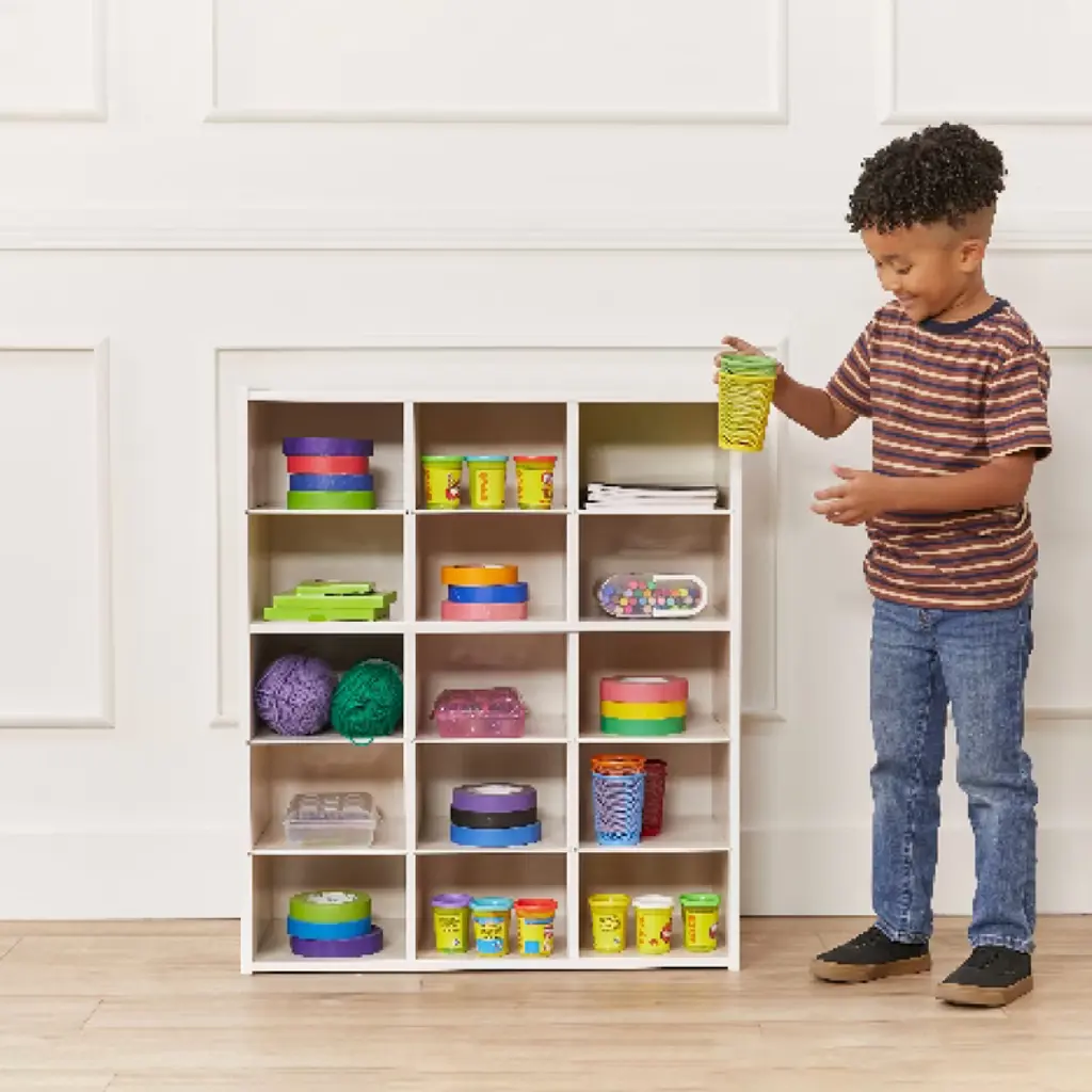 Keep your early childhood environment uncluttered with the ECR4Kids Streamline 15 Cubby Tray Storage Cabinet. Ideal for small spaces, kids and adults can organize and store toys, games, building blocks, and school supplies that may otherwise be forgotten. Designed to grow with little ones, this storage cabinet helps parents, teachers, and educators sort and store small items and keep them within reach. Give children their own separate cubby at school to store art projects, individual items, homework, and more. Pair with ECR4Kids Scoop Front Storage Bins to keep little things contained and off the floor; bins are sold separately. The low-profile open-face shelves encourage children to select their favorite activity independently and confidently and clean up when playtime is over. Introducing organizational skills at a young age helps kids handle information in a logical way, prioritizing activities and building self-esteem. Constructed from sustainably harvested birch plywood with a durable finish sealing the wood surface and resisting scratching. A UV inhibitor helps furniture resist ultraviolet light and yellowing. Natural birch plywood is extremely durable and will hold up to everyday use in a classroom, homeschool, or library.