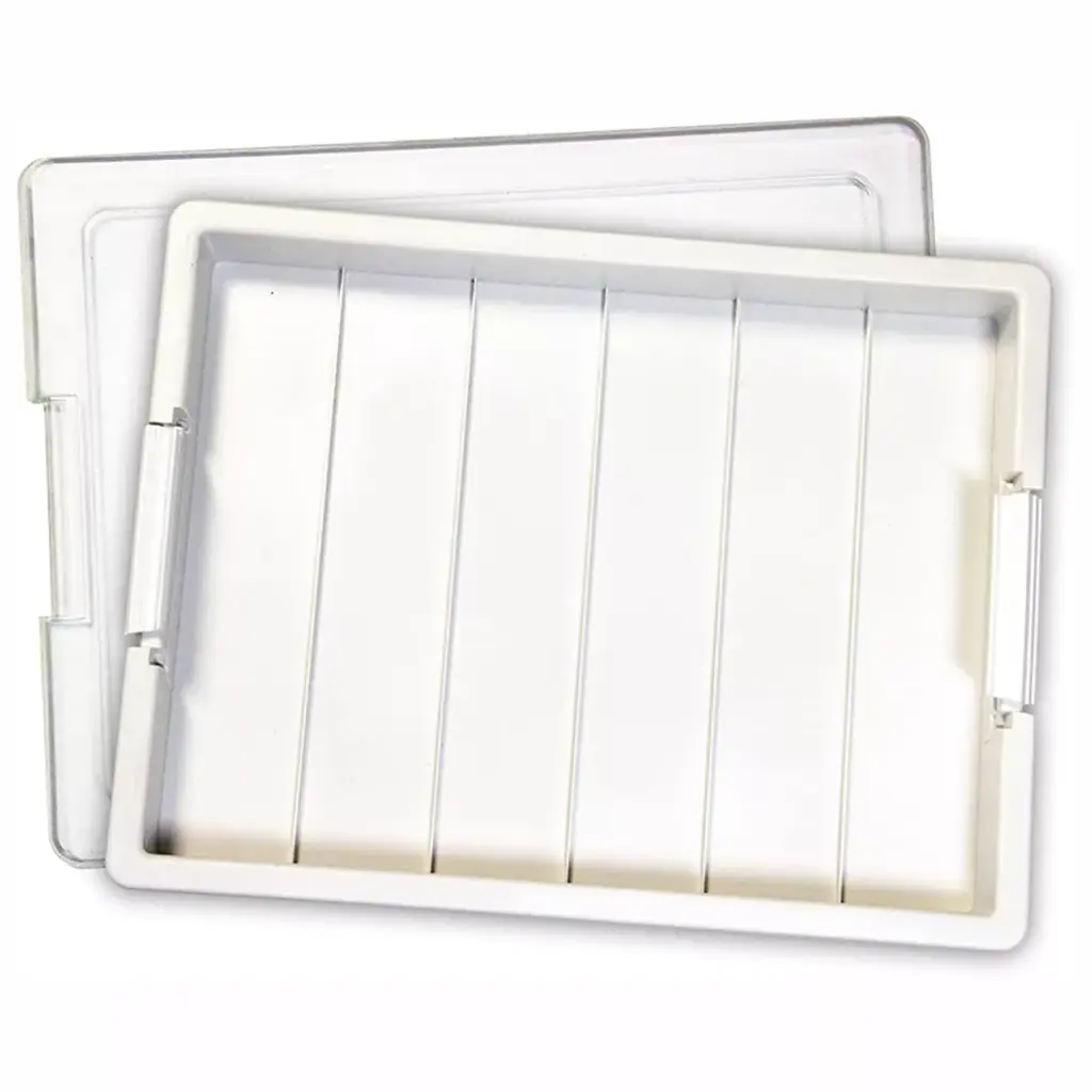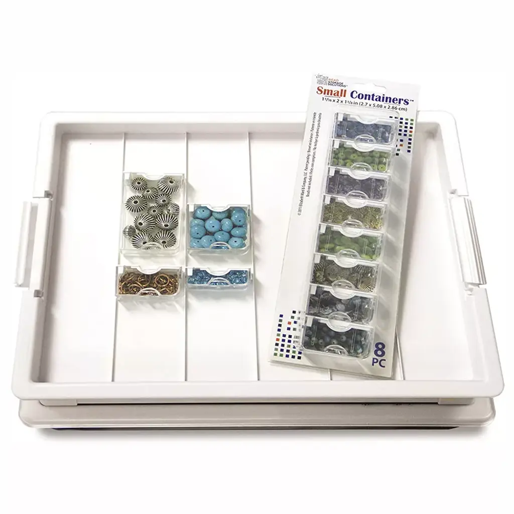 Keep your beads, clasps, and other jewelry and craft supplies organized with the 2-pack Bead Storage Solutions Plastic Organizer Tray with Lid. This bead storage tray comes with a clear plastic snap-on lid. The empty tray lets you decide which containers or divider to use to sort your jewelry-making supplies, beads, and more. The bead organizer box helps keep your workspace neat and clean. The clear, snap-shut lid makes it easy for you to see all of your beads and supplies without having to open the box. You can stack the organizer trays for easy storage. Take them with you to craft shows, studios, and more to continue working on your projects. The bead organizer tray can also be used to store craft supplies and scrapbooking supplies. No matter what you like to create, keep small crafting supplies sorted and organized in 1 convenient spot with the Bead Storage Solutions 2 Piece Plastic Organizer Tray with Lid.