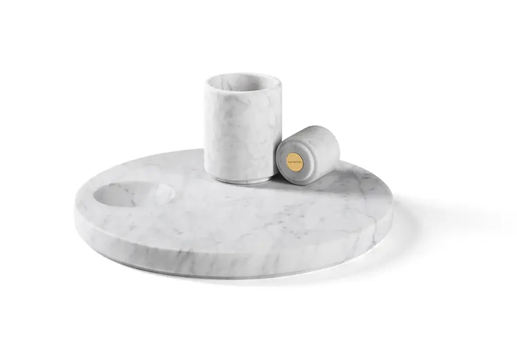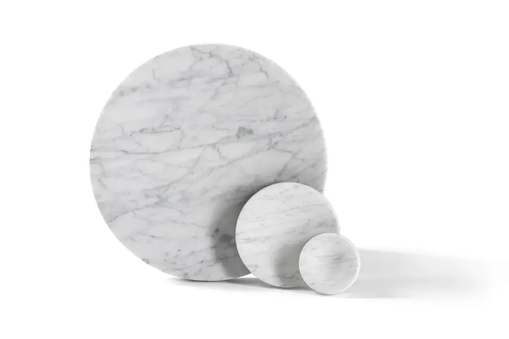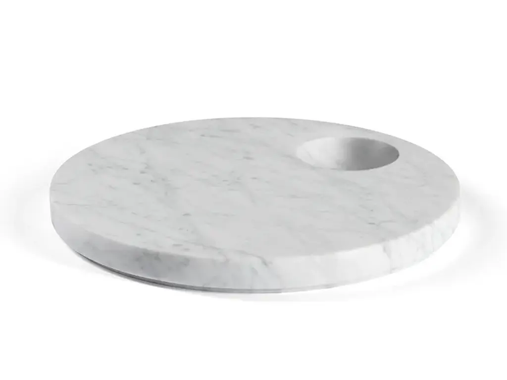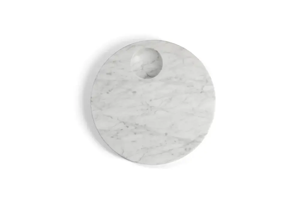 John Pawson has created a family of vessels and utensils for the home whose powerful affinities include rigorous simplicity of form, materiality and function. Each of the pieces comprising the Ellipse Collection is fabricated from a single seamless piece of Bianco Carrara marble. Circular in plan, the pieces share details of geometry and proportion, with variation in the character of the internal curve determined by embedded rituals of use. Contrasting polished and sandblasted textures create subtle differentiation between flat and contoured surfaces, for the eye and for the hand.