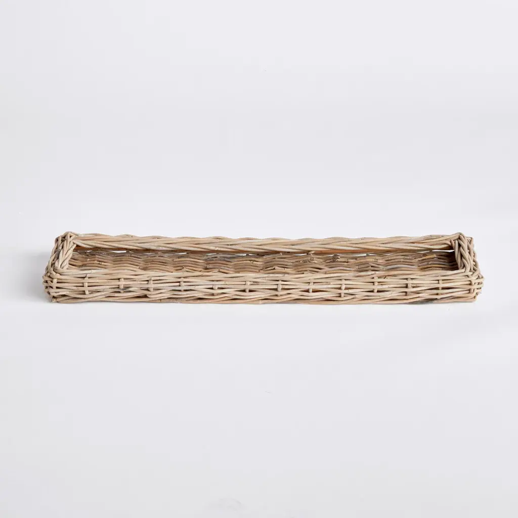Made of a large gauge rattan, this extra long tray makes a beautiful centerpiece. Fill it with orbs, faux flower stems or leave it just as is for a clean look. 8.25"X35"X2.5"