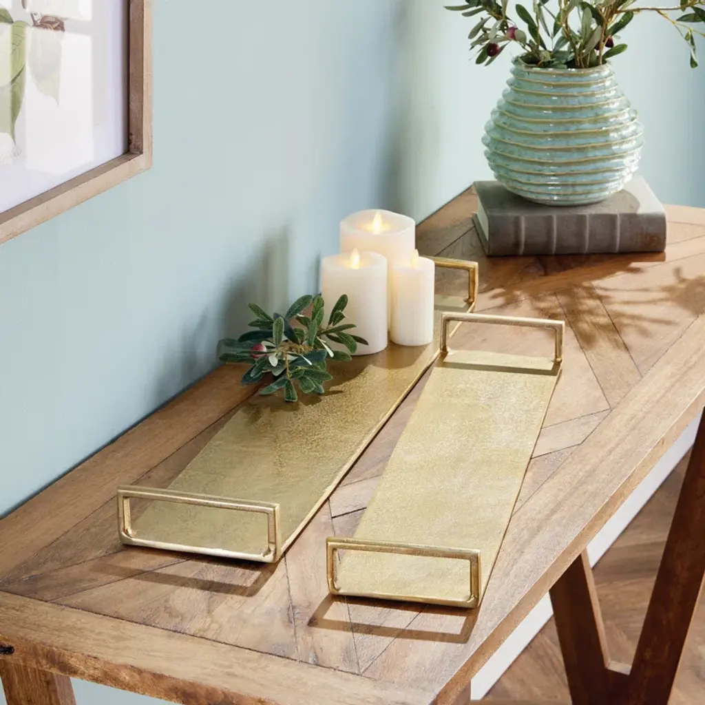 This cast aluminum tray is a beautiful way to display a special accent, vase or candleholder. Substantial in size, and full of rich texture, it is also lovely all on it's own.