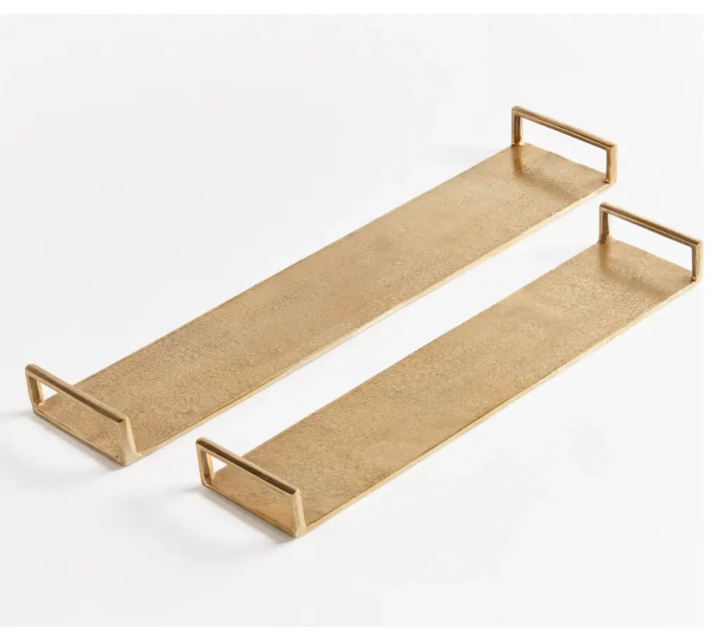 This set of cast aluminum trays are a beautiful way to display a special accent, vase or candleholders. Substantial in size, and full of rich texture, they''re also lovely all on their own. Decorative use only. Made of cast aluminum. Wipe with soft dry cloth