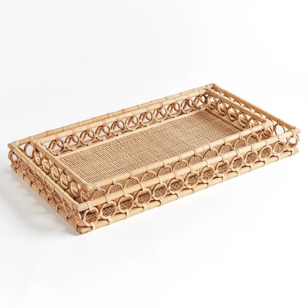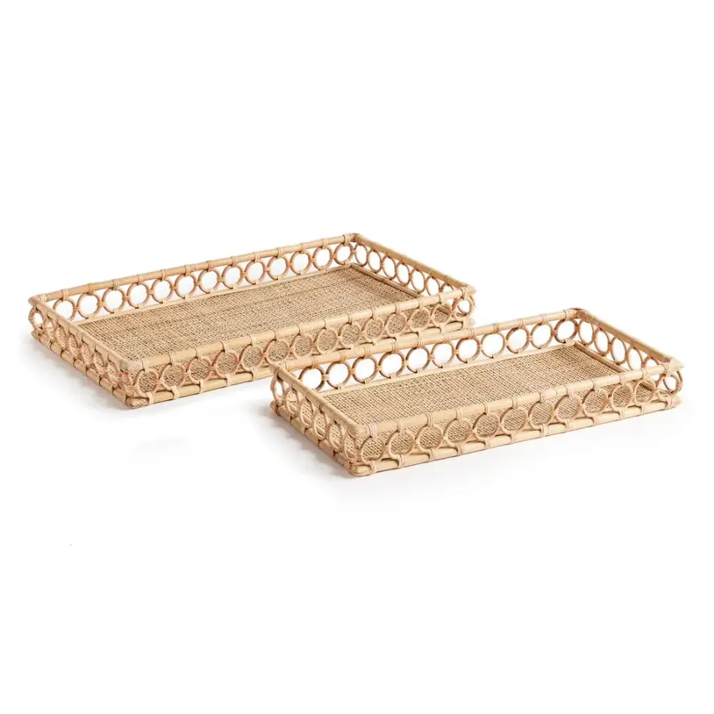 Elsie Coastal Beach Natural Rattan Rectangular Decorative Tray - Set Of 2