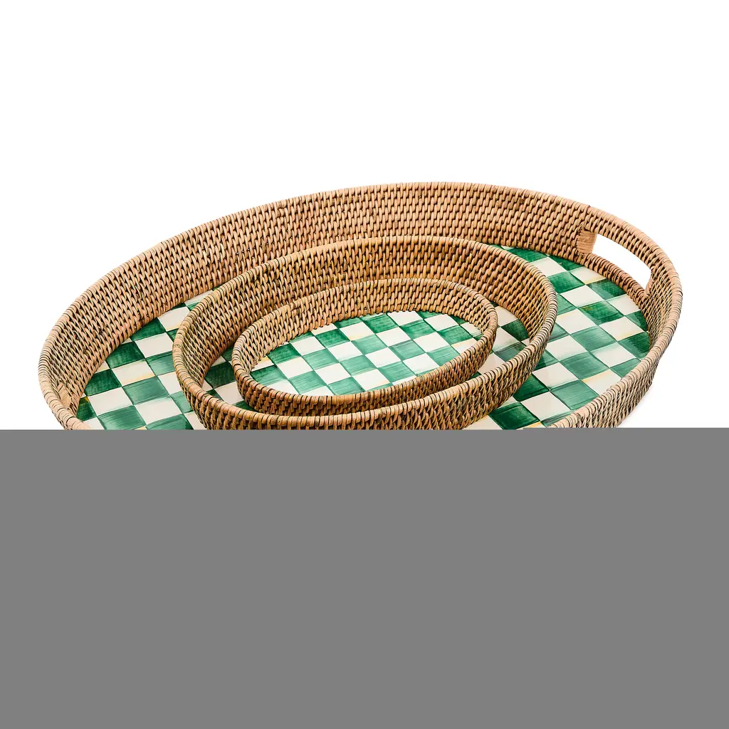 Emerald Check Enamel & Rattan Large Tray