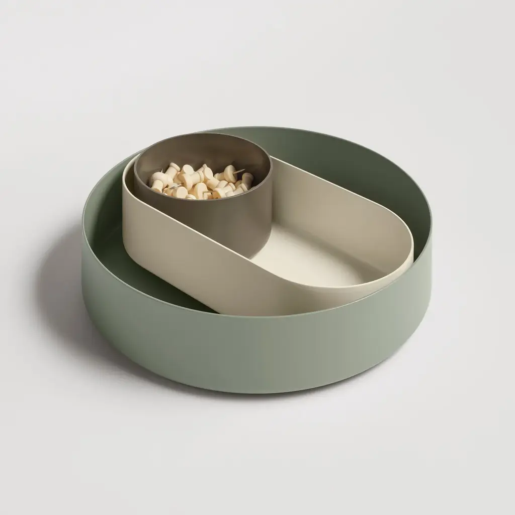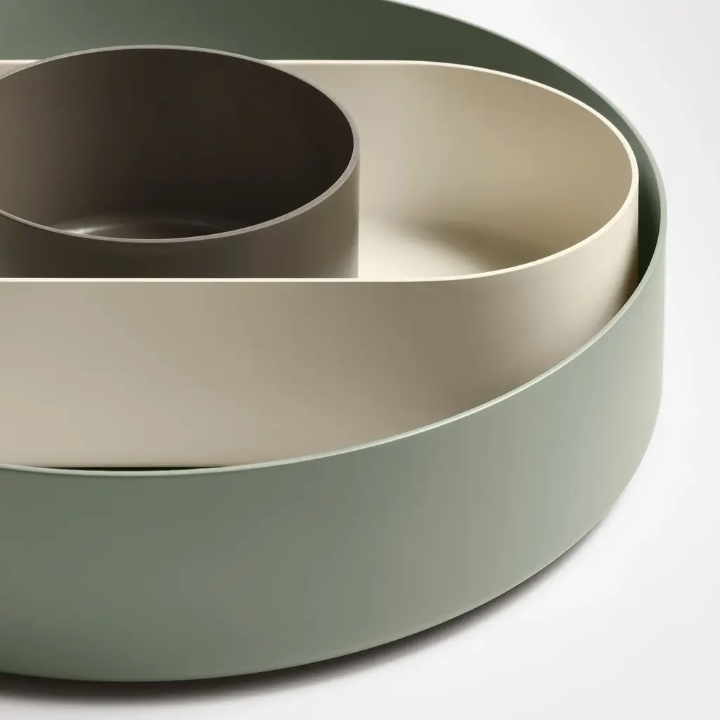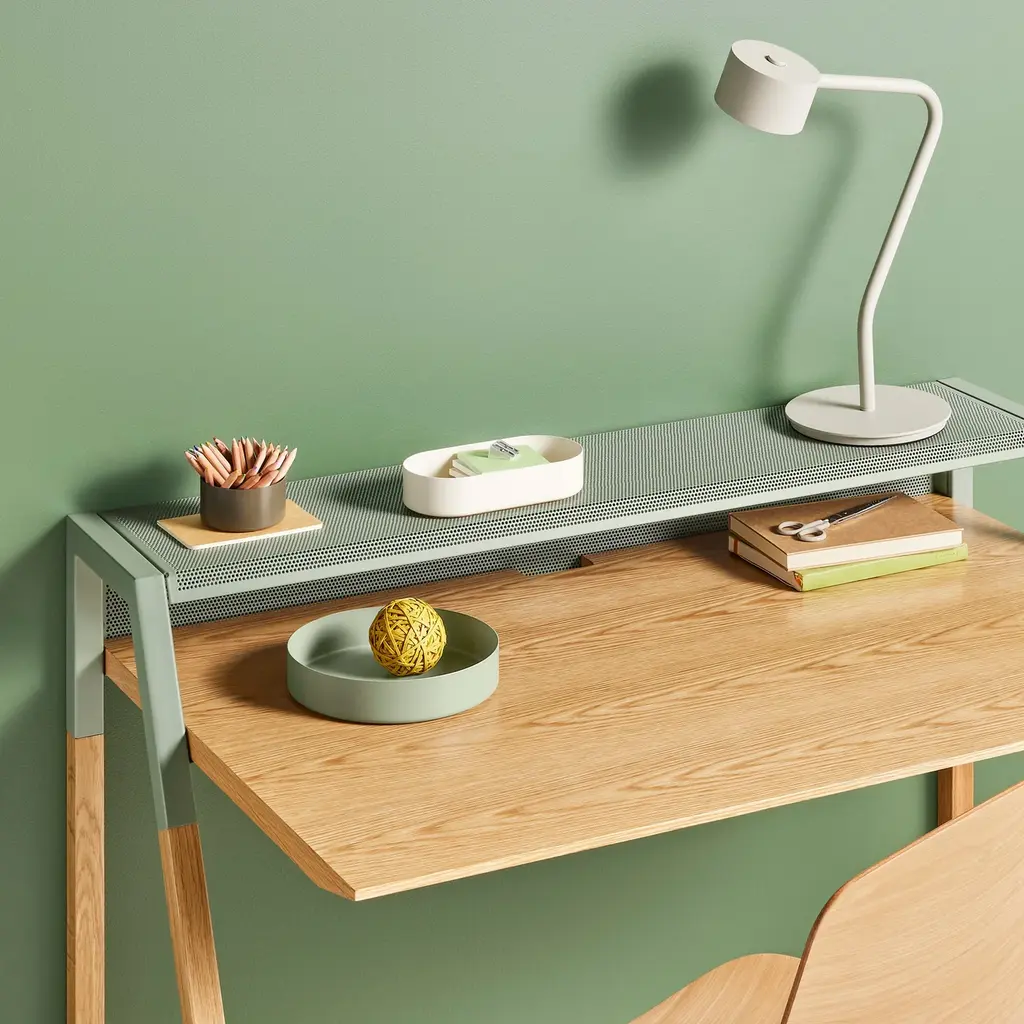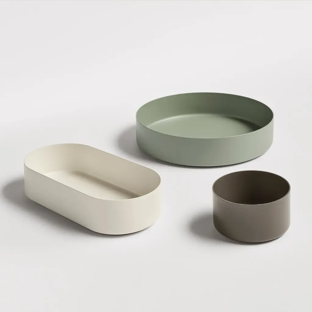 This powder-coated steel throuple brings harmony to your space and your stuff. Funky color combinations keep your jewelry, paperclips and random ephemera looking calm, cool, and collected. Cork pads protect surfaces and avoid slippage.