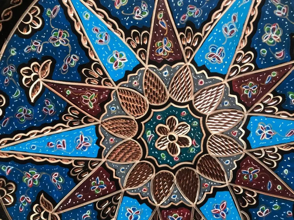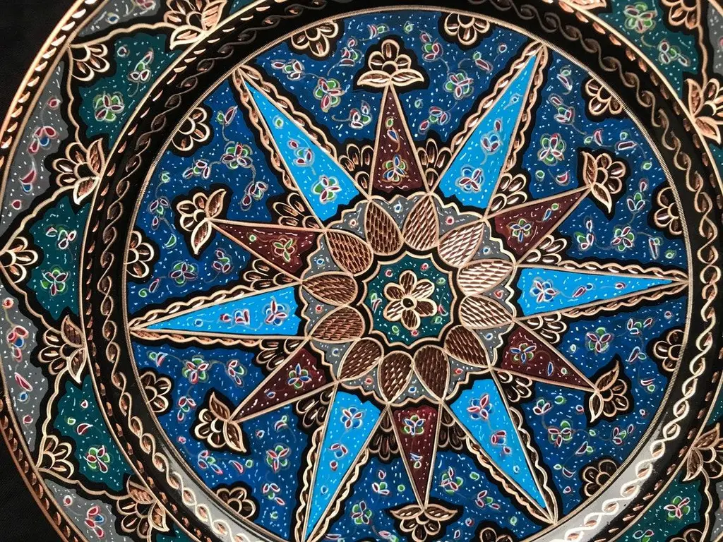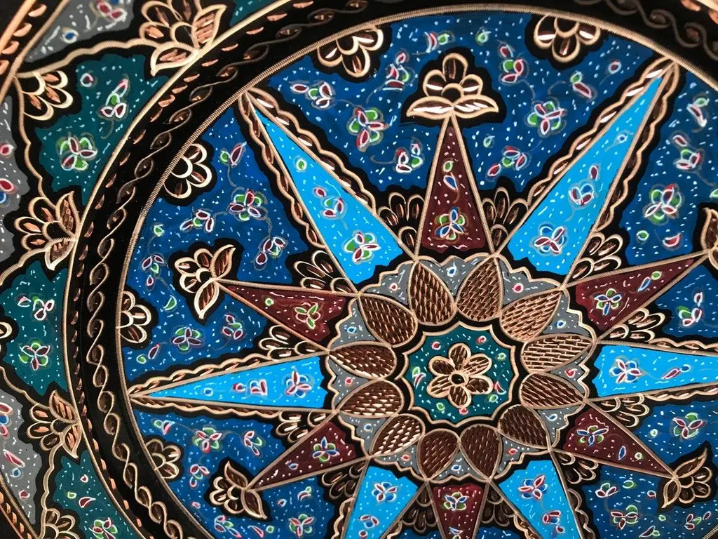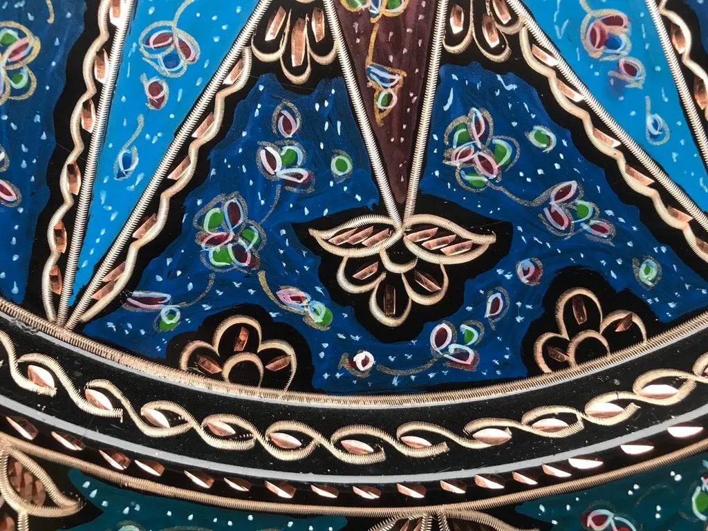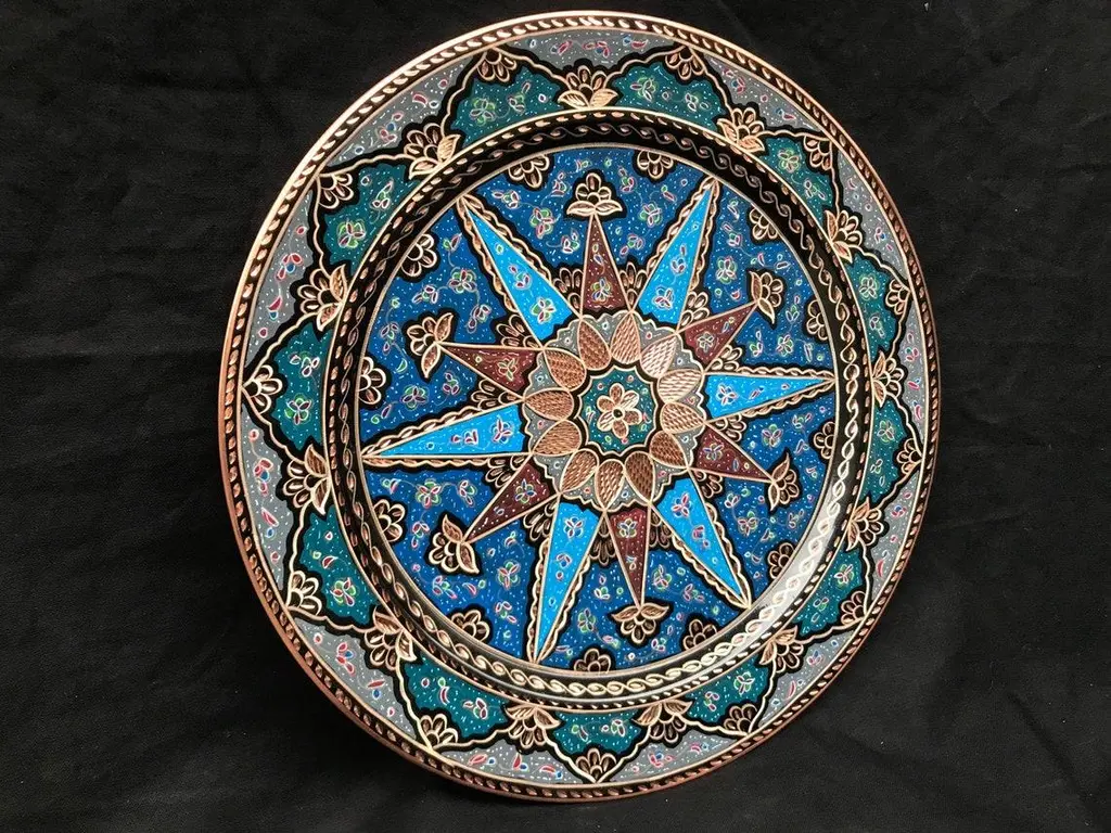 Floral carved wall art plate \.service tray made by copper. Colorful design for wall. Great for displaying your unique decoration. Hand painted plates can be hung to create wonderful wall art. There is an insert on the back of the plate for hanging. SIZE: 43 CM / 17 INCH My items are all unique and one of a kind. You can wash my items with your hand and you need to dry it properly. All hand painted, hand carved, varnished and waterproof.