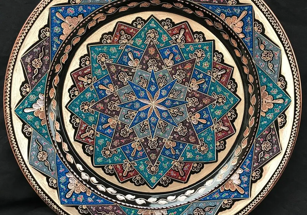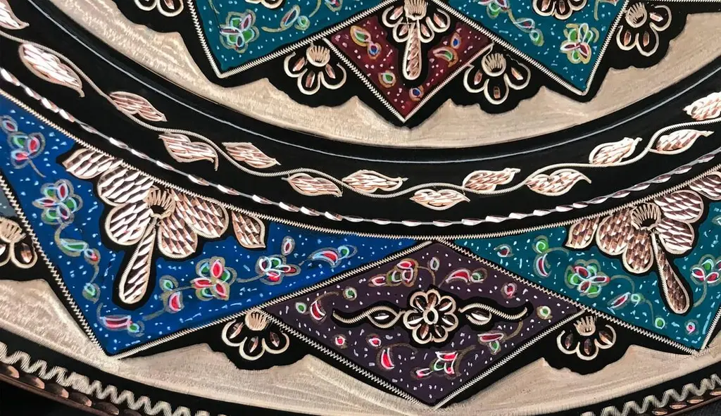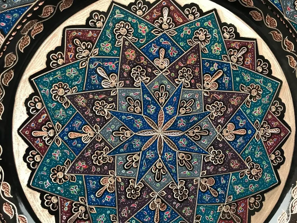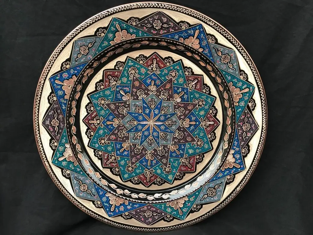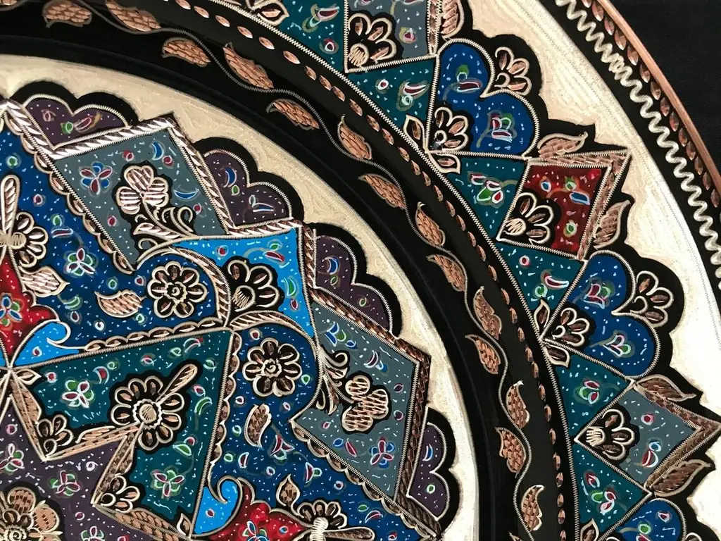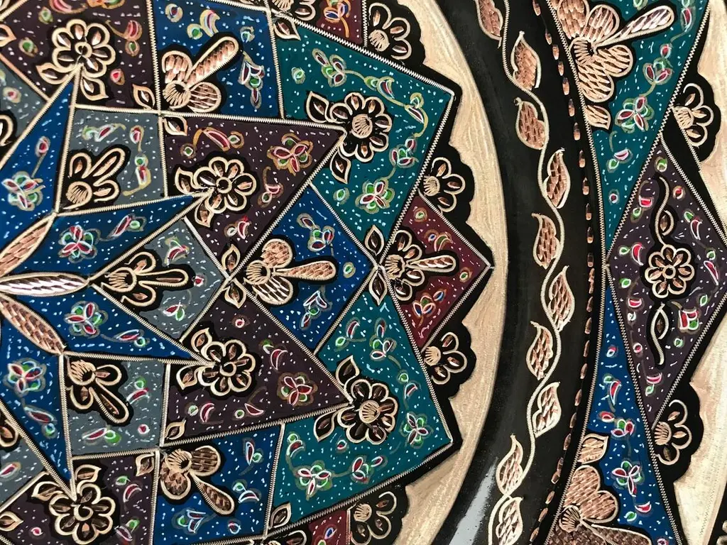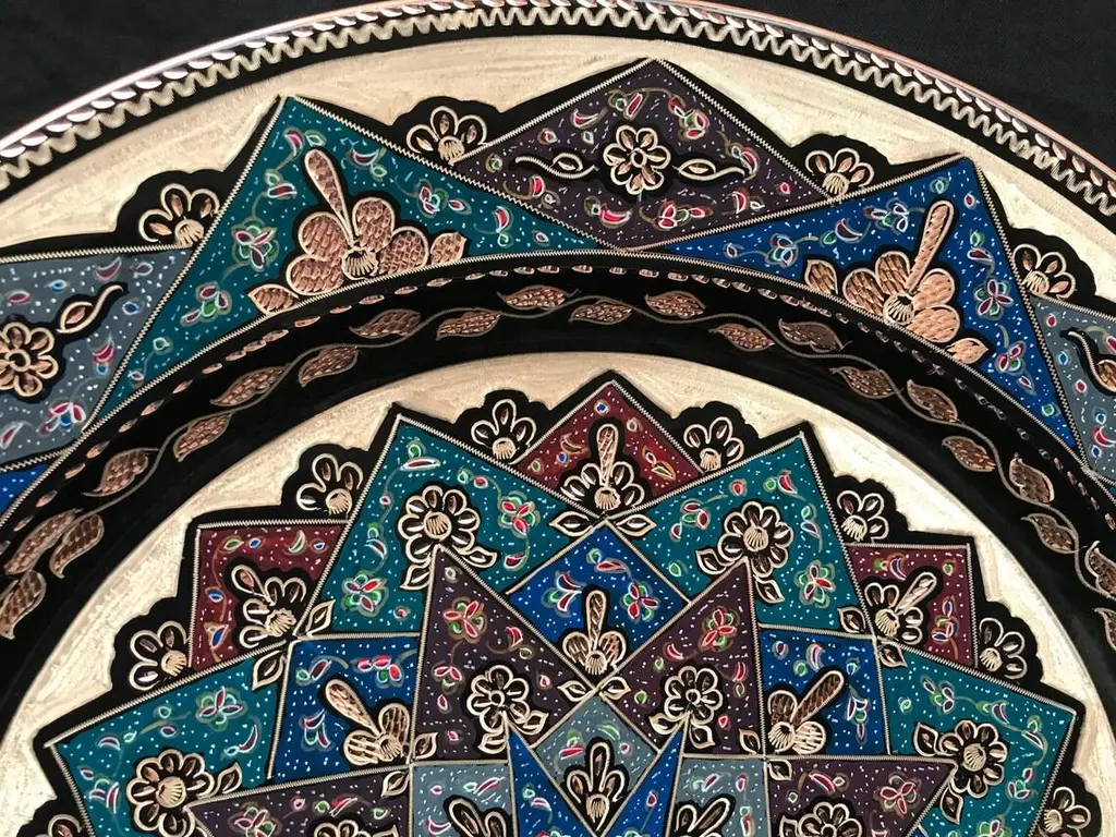 Floral carved wall art plate \.serving tray made by copper. Colorful design for wall. Great for displaying your unique decoration. Hand painted plates can be hung to create wonderful wall art. There is an insert on the back of the plate for hanging. SIZE: 43 CM / 17 INCH My items are all unique and one of a kind. You can wash my items with your hand and you need to dry it properly. All hand painted, hand carved, varnished and waterproof.