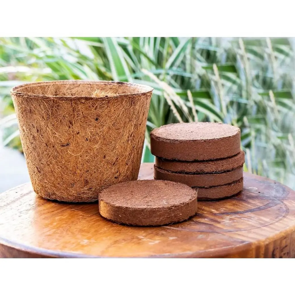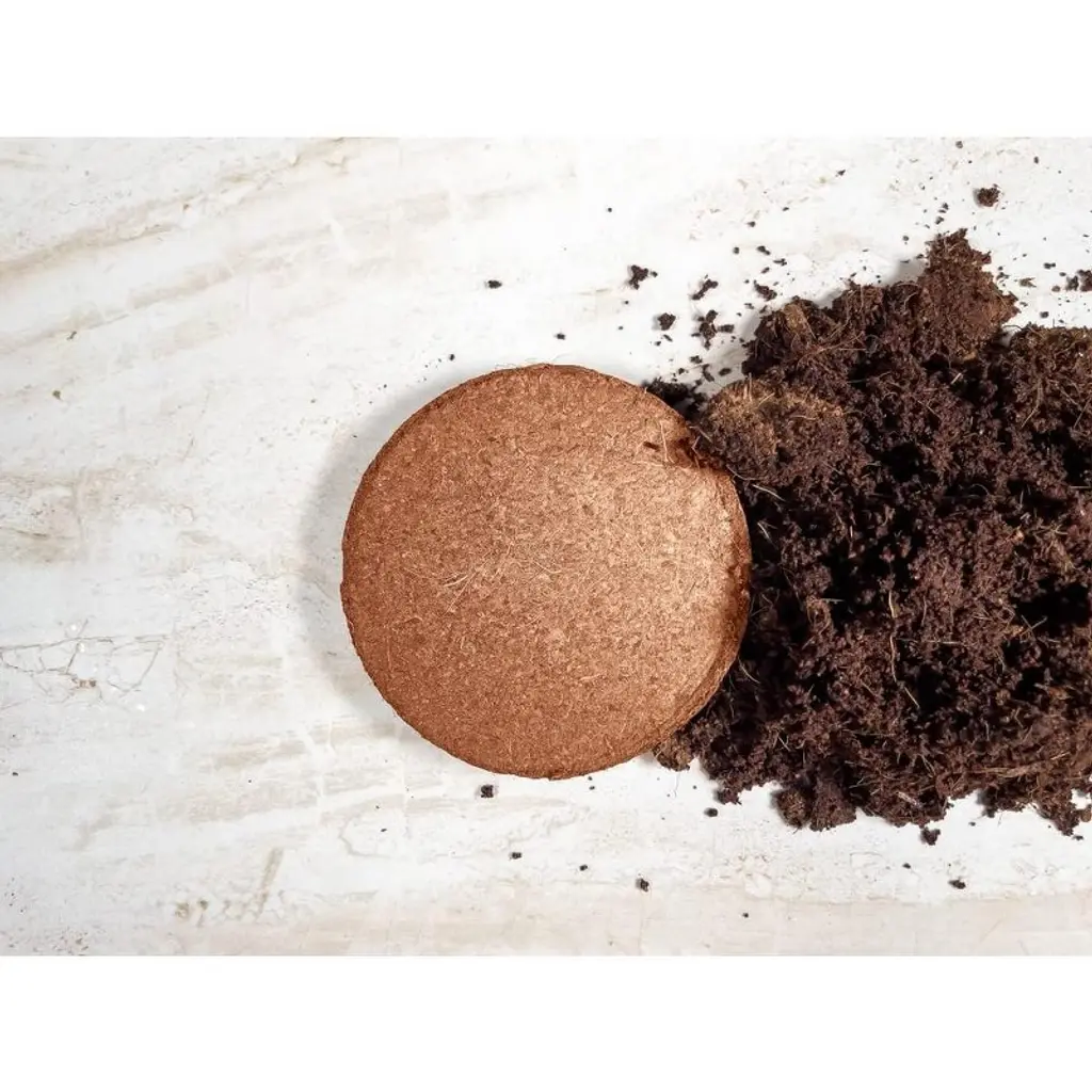 Our Coco Coir Seed Starter Pellets, 4 Inches Dia - 10 Pack, are the perfect solution for all your seed starting needs! Made from premium quality compact coconut coir, these coco coir seed starter plugs provide the perfect balance of moisture and air flow for your plants to thrive. Gone are the days of messy garden soil and unreliable peat pellets for seedlings. Our soil pods for starting seeds are a convenient and hassle-free alternative that make the process of starting seeds a breeze. The seed starting pellets come in several sizes to meet your gardening needs. When ready to use, just soak the coco coir discs in water and they will effortlessly expand into fresh, ready-to-use potting soil. Coco grow pellets are designed to fit seamlessly into any seed starter tray or seed starter tray with peat pellets, making it easy to get your garden started indoors. They are also ideal for outdoor plants and vegetable gardens, providing an ideal pH balanced soil for your seeds to grow in. With our coco coir seed starter pellets, you can be sure that your plants will stay hydrated longer and require less frequent watering, which helps save water and reduce the amount of time and energy you need to spend taking care of them. Not only do our coco coir seed starter pellets provide a better growing medium for your seeds, but they are also an eco-friendly alternative to traditional garden soil and peat pellets for seedlings. Made from renewable resources and biodegradable materials, our seed starting pellets are a sustainable choice for your garden.