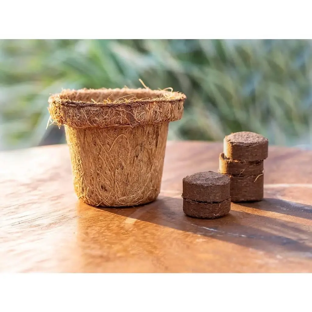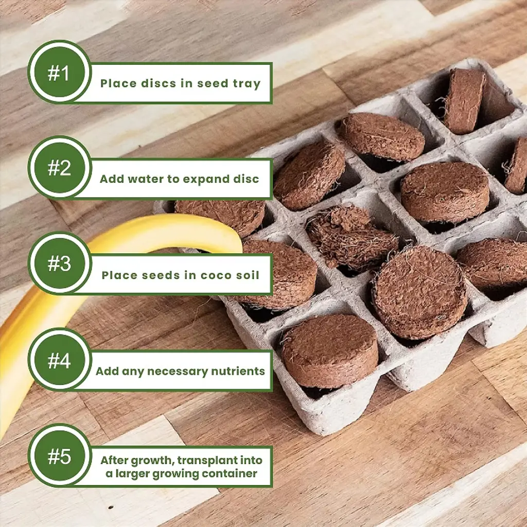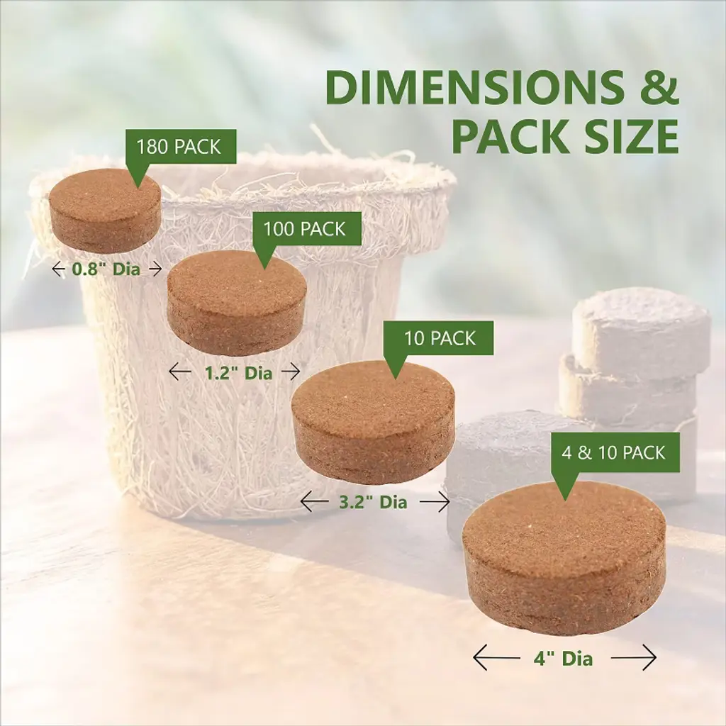 Our Coco Coir Seed Starter Pellets, 4 Inches Dia - 4 Pack, are the perfect solution for all your seed starting needs! Made from premium quality compact coconut coir, these coco coir seed starter plugs provide the perfect balance of moisture and air flow for your plants to thrive. Gone are the days of messy garden soil and unreliable peat pellets for seedlings. Our soil pods for starting seeds are a convenient and hassle-free alternative that make the process of starting seeds a breeze. The seed starting pellets come in several sizes to meet your gardening needs. When ready to use, just soak the coco coir discs in water and they will effortlessly expand into fresh, ready-to-use potting soil. Coco grow pellets are designed to fit seamlessly into any seed starter tray or seed starter tray with peat pellets, making it easy to get your garden started indoors. They are also ideal for outdoor plants and vegetable gardens, providing an ideal pH balanced soil for your seeds to grow in. With our coco coir seed starter pellets, you can be sure that your plants will stay hydrated longer and require less frequent watering, which helps save water and reduce the amount of time and energy you need to spend taking care of them. Not only do our coco coir seed starter pellets provide a better growing medium for your seeds, but they are also an eco-friendly alternative to traditional garden soil and peat pellets for seedlings. Made from renewable resources and biodegradable materials, our seed starting pellets are a sustainable choice for your garden.