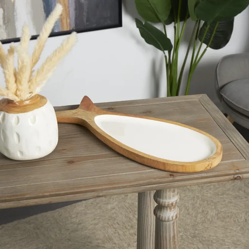 Add a touch of rustic elegance to your home with this handmade solid wood tray. Featuring an abstract shape in a lovely blend of brown and white finishes, it's a versatile piece that complements any décor. Although not food safe, it's perfect for displaying decorative items, organizing small essentials, or even serving as a stylish centerpiece. Handcrafted for a one-of-a-kind look, this tray is a delightful addition to your living space. Just remember, it's intended for residential use only. Enjoy!