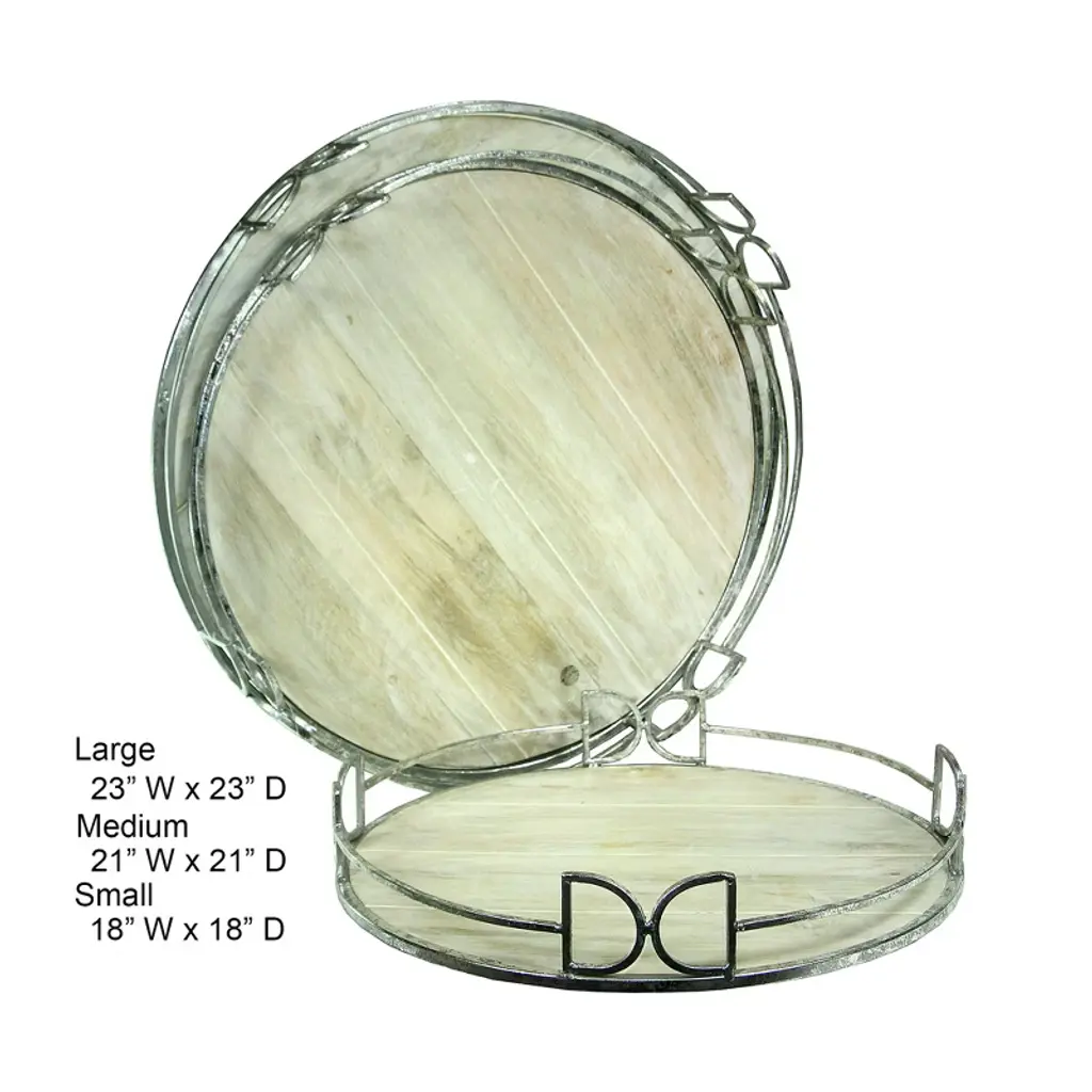 Essential Decor & Beyond 3Pc Wooden And Silver Metal Tray