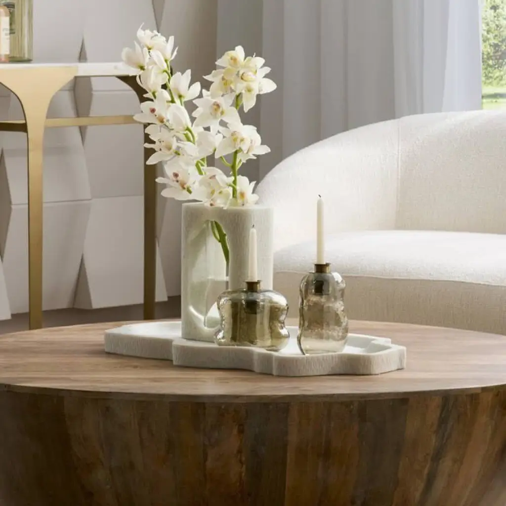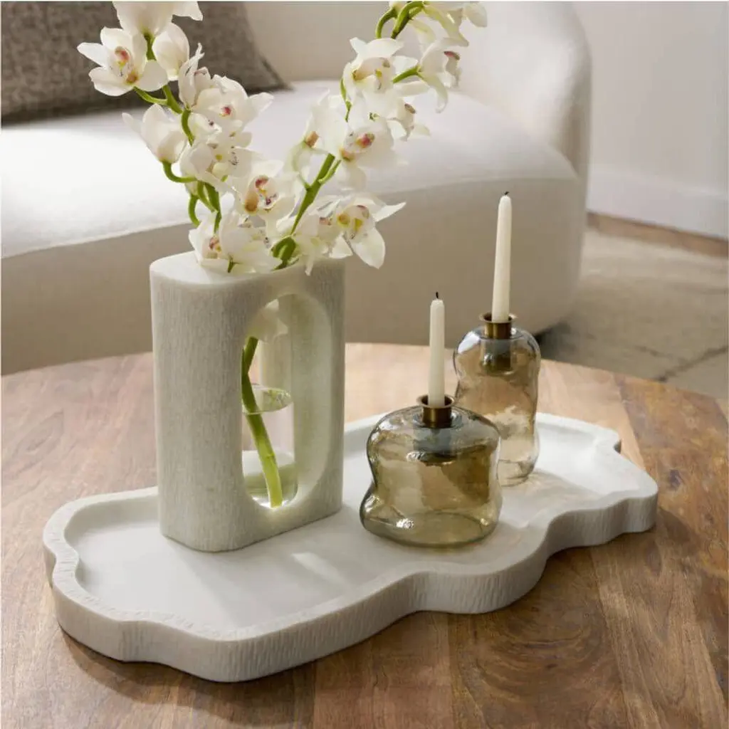 This shallow tray, cast from ivory riverstone composite, recalls the flowing and rippling shapes found in natural cave formations. Finish will vary.