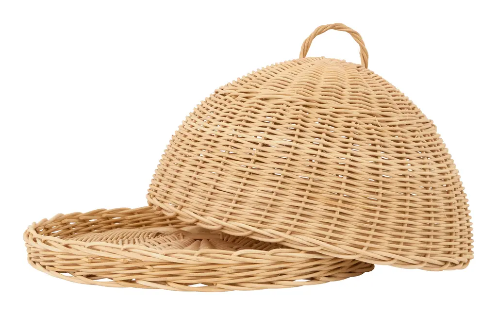 No summer gathering is complete without our Feast Cloche & Tray. Handwoven in Morocco from natural rattan, this textural beauty pairs an oversized tray with a domed cloche lid, allowing you to create a dramatic display of your fare while also protecting it from insects and the elements. A must-have for outdoor entertaining, we love it for al fresco dining on the patio or picnics in the park — although it’s also great for bringing a boho-chic feel to an indoor tablescape. •handwoven rattan•morocco•each is unique; variations in shape, size and natural characteristics should be expected Dimensions•overall: approximately 17" diameter x 10.75"H •tray: 17" diameter x 1.75"H•cloche: 15.5" diameter x 10.25"H