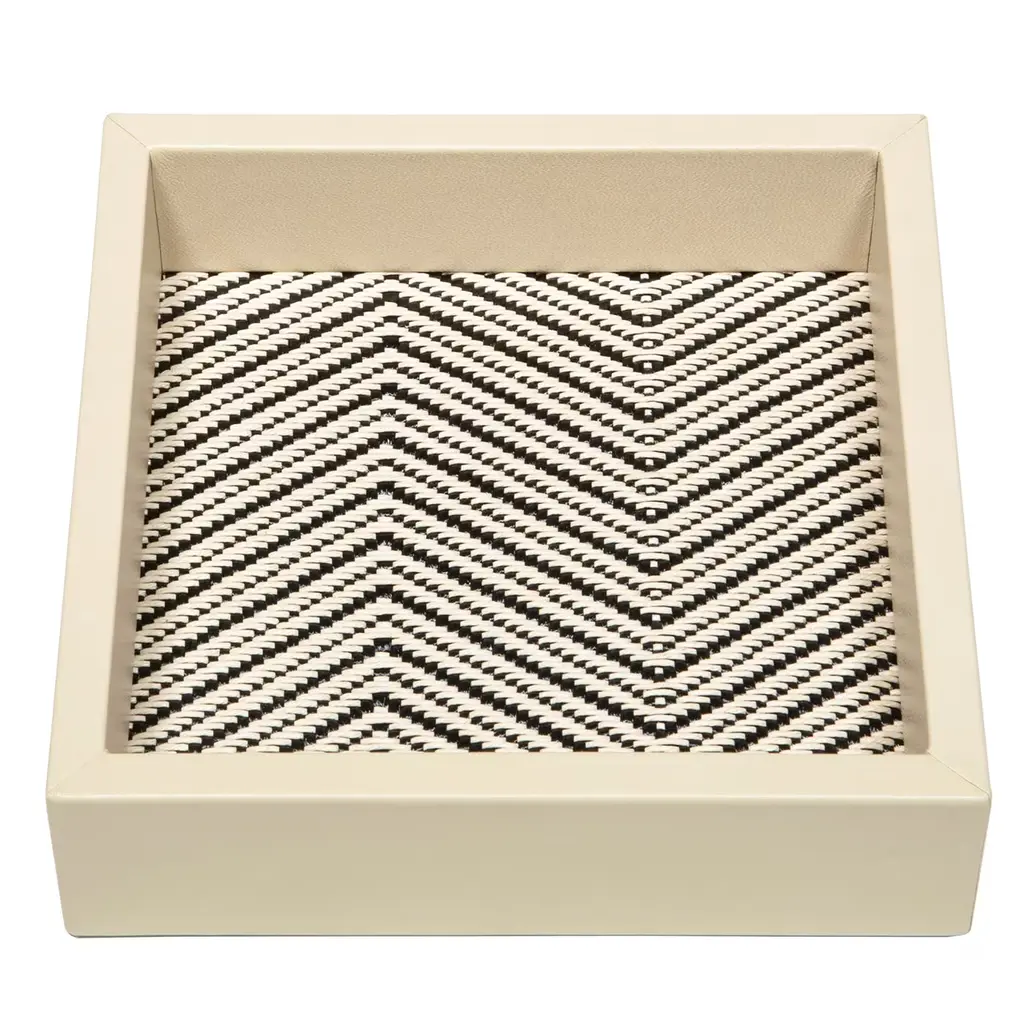 Febe leather valet tray with padded handwoven lining is a perfect synthesis between aesthetics and functionality. A design object capable of providing the surrounding environment with style and personality.
