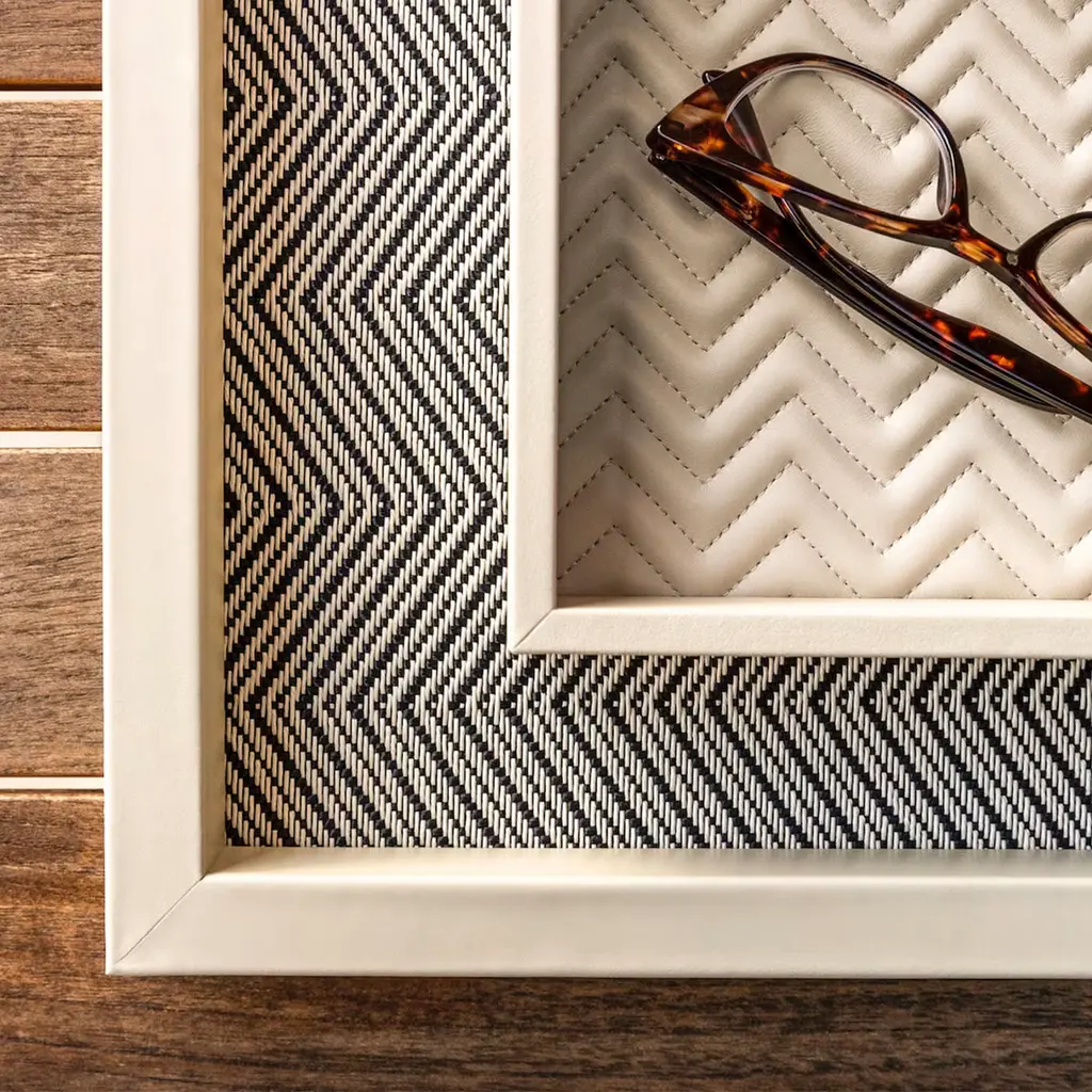 Febe leather valet tray, with herringbone waxed cotton lining, is a perfect synthesis between aesthetics and functionality. A design object capable of providing the surrounding environment with style and personality.