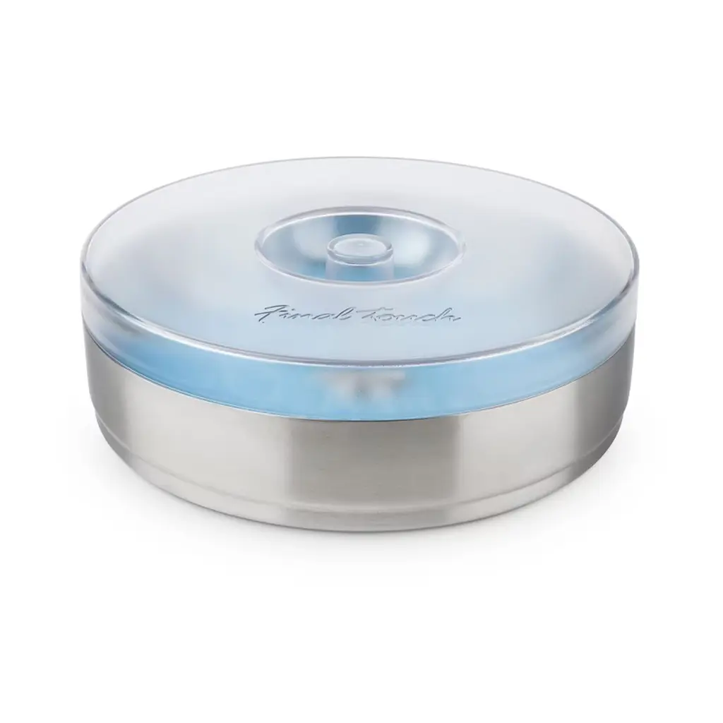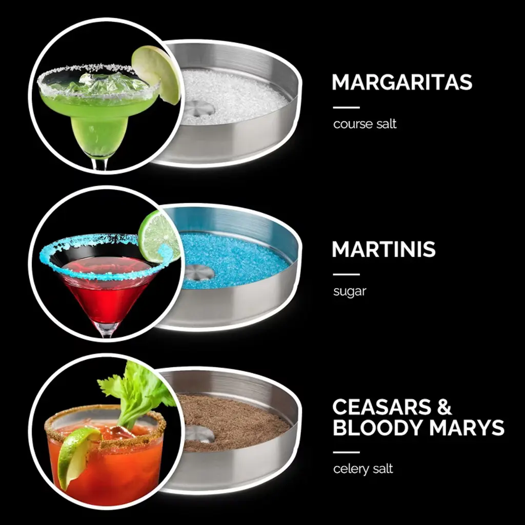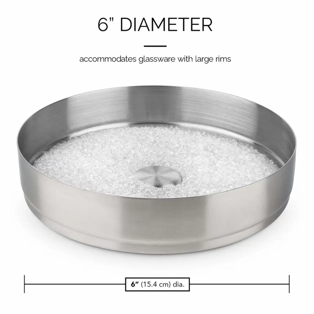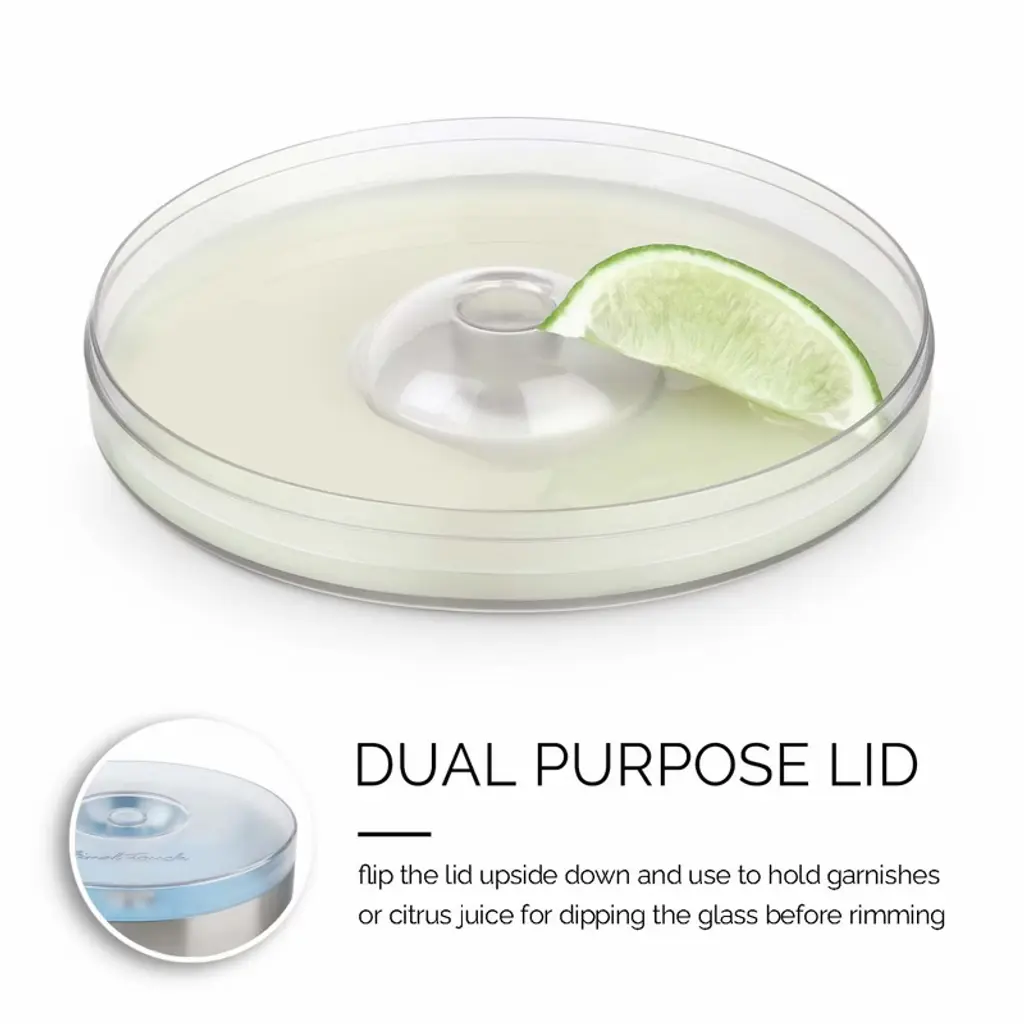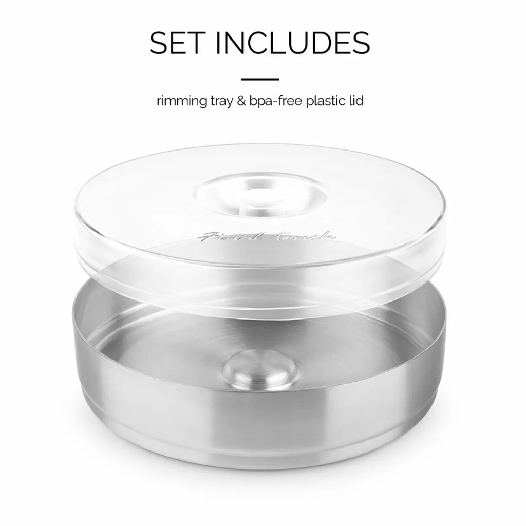 Final Touch 1 Tier Cocktail Rimmer With Lid - Stainless Steel Glass Sugar & Salt Rimmer, Versatile Garnish Tray - Essential Barware Tool