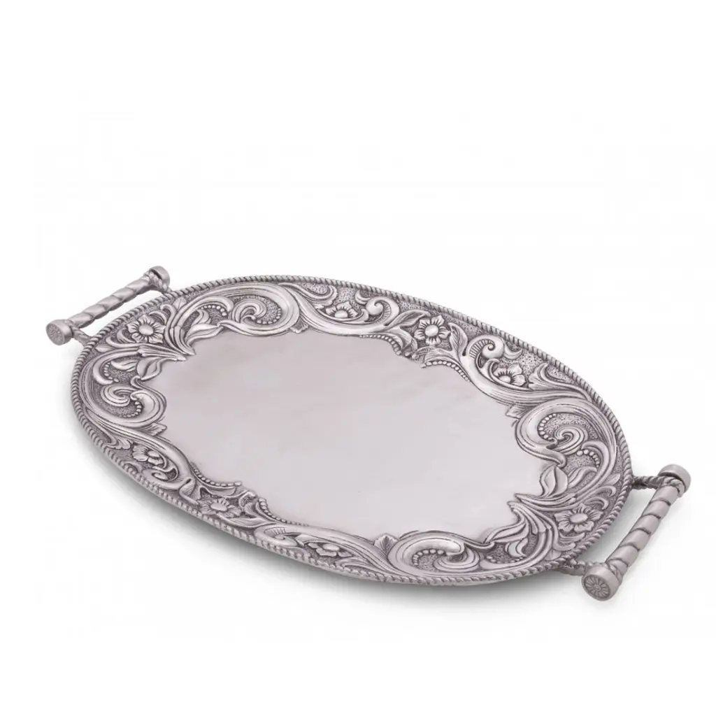 These gorgeous Finezza platters feature all the intricate beauty of our Finezza Collection with a bold, intricate additions to the design. This two-handled tray is perfect as an addition to your serveware collection, or leave it on display! Founded in 1997 by Ann Skidmore, Arte Italica is a story of one woman's passion for Italian history, culture, art, and vintage pewter. Today, Arte Italica is one of the leading importers of European tabletop and home accessories products in the United States. Every piece is handmade and designed so that they can easily be mixed and matched to create a timeless, classic, and effortless look.