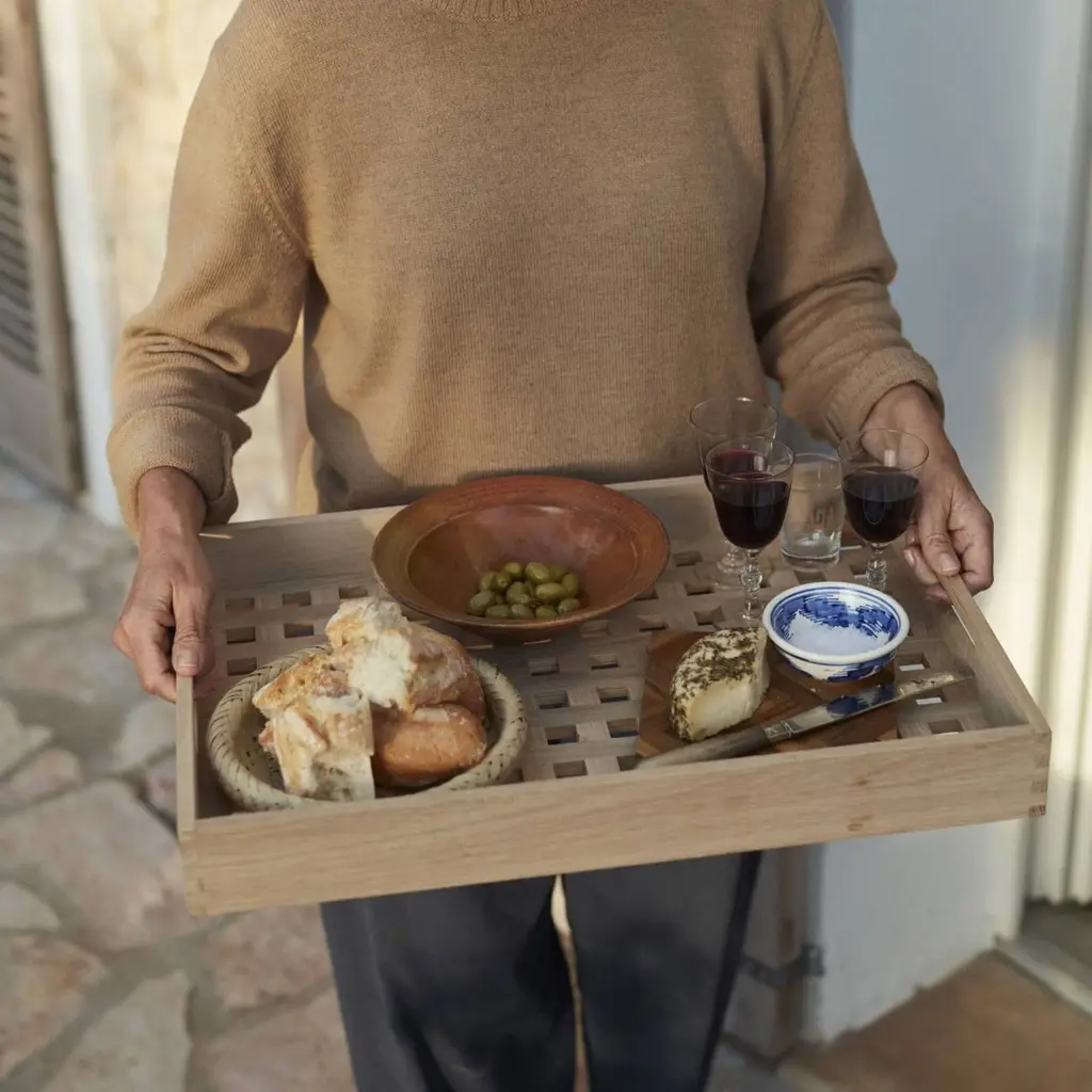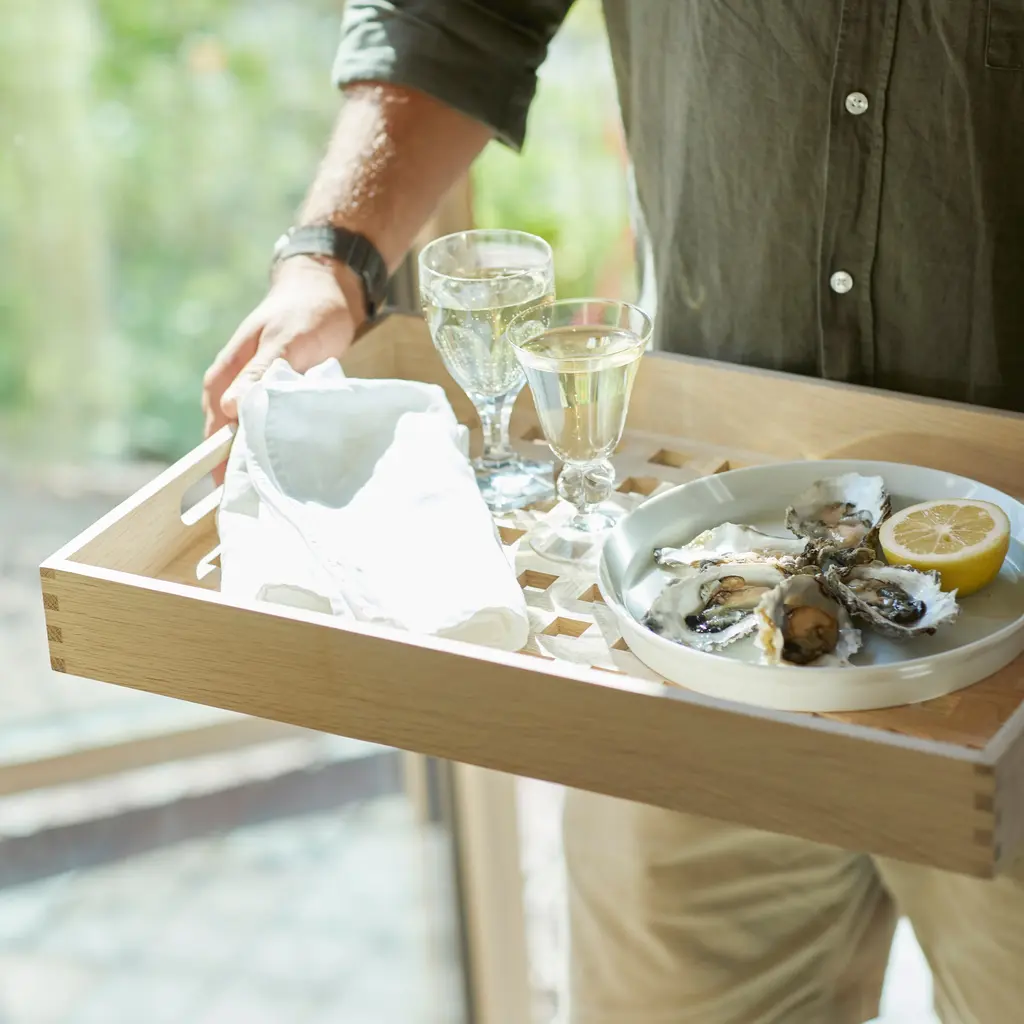 Skagerak debuted its first-ever accessory in 1982 and Fionia Tray is still going strong. Beautifully crafted in either natural oak or teak, it makes for an elegant serving tray, indoors or out. In a choice of 2 sizes, this modern classic has handles carved into the ends of the tray, making it easy to carry drinks or food from kitchen to table, out to the patio or into the bedroom or study.