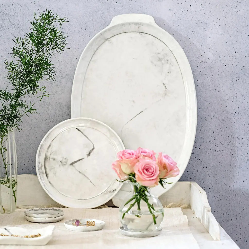 Florentine Wooden Accessories Marble Handled Medium Oval Tray