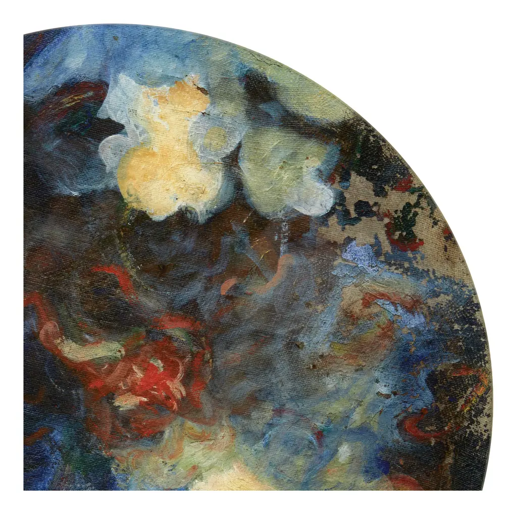 With swirls of color and plenty of painterly texture, our French Abstract Painting Tray would make a welcome addition to any art-filled home. We created this JH exclusive in collaboration with renowned designer and artist John Derian, who, since 1989, has delighted decor enthusiasts everywhere with handmade decoupaged goods crafted from his expansive collection of curious 18th and 19th century images. Inspired by Derian’s process and our own love for all things vintage, we sourced the composition featured here from the personal collection of our very own Chief Creative Officer, Devin Kirk. “I brought this rare round canvas painting home from Provence,” he shares. “Its unusual shape and scale made it impossible to pass up. This plate version is almost identical in size!” Derian and his skilled team of artisans have expertly reproduced this one-of-a-kind find under handblown glass in his NYC studio, creating a beautiful decoupaged dish that captures every brushstroke and unique characteristic of the original artwork. Right at home hanging on the wall amongst other vintage works (or fellow pieces from the JH x JD collection!), this tray would also make a lovely addition to a tabletop vignette, where it can stand alone or act as a catchall for all manner of items. •handmade decoupage•vintage image •handblown glass •food safe •hand wash only•jh x john derian Dimensions•13.5" diameter x .5"H