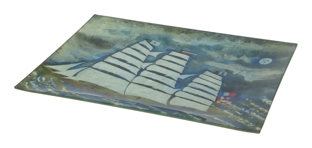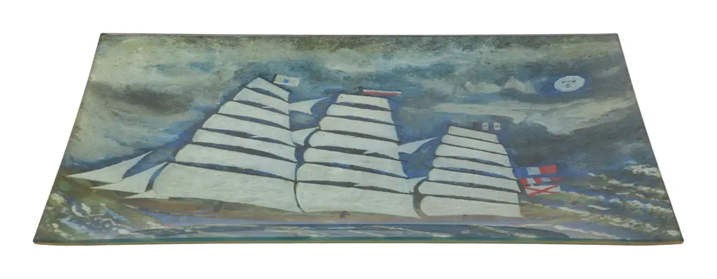 Longing for the open waters? Embrace your inner seafarer with our French Sailboat at Night Tray. We created this JH exclusive in collaboration with renowned designer and artist John Derian, who, since 1989, has delighted decor enthusiasts everywhere with handmade decoupaged goods crafted from his expansive collection of curious 18th and 19th century images. Inspired by Derian’s process and our own love for all things vintage, we sourced the charming moonlit seascape featured here from the personal collection of our very own Chief Creative Officer, Devin Kirk. “I scored this painting years ago at Paris’ iconic Porte de Vanves flea market and it’s been a favorite of mine ever since,” he shares. “If you look closely, there’s a sweet man in the moon!” Derian and his skilled team of artisans have expertly reproduced this beloved one-of-a-kind find under handblown glass in his NYC studio, creating a beautiful decoupaged dish that captures every brushstroke and unique characteristic of the original artwork. Right at home hanging on the wall amongst other vintage works (or fellow pieces from the JH x JD collection!), this tray would also make a lovely addition to a tabletop vignette, where it can stand alone or act as a catchall for all manner of items. •handmade decoupage•vintage image •handblown glass •jh x john derian Dimensions:•13"W x 10"D x .75"H