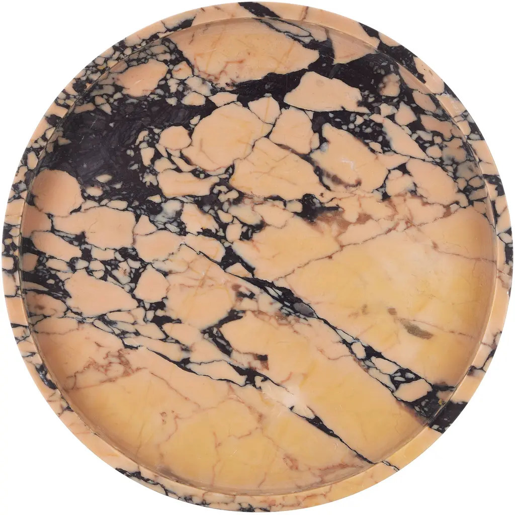 The Freya Round Tray illustrates how artful nature can be. Made of Purple Breccia marble, the complex patterning of the stone makes this a natural focal point for a vignette or a stunning specimen for when it's time to serve dinner, drinks, or appetizers. The peach and purple decorative tray will stand out whatever its purpose will be.