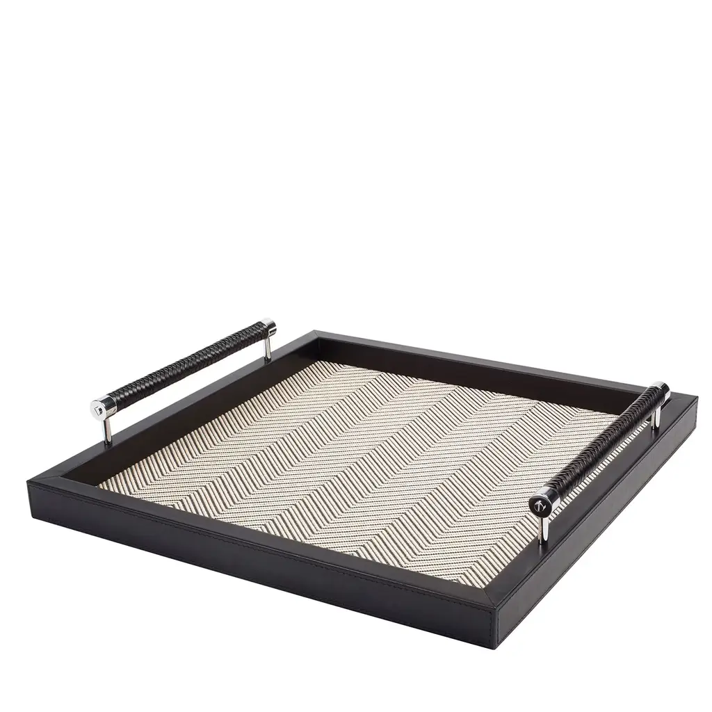 Leather tray with handwoven lining, and bamboo handles. It is a perfect synthesis between aesthetics and functionality. A design object capable of providing the surrounding environment with style and personality.