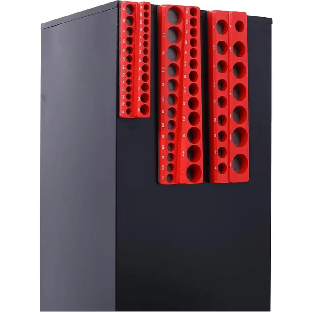 Garvee 3 Pcs Socket Holder Set 1/2-inch 3/8-inch 1/4-inch Drive Socket Trays Magnetic Socket Organizer Professional Quality Tools Organizer Sae Red