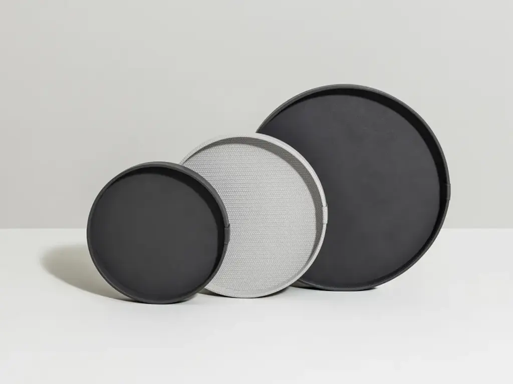 Gea is a round tray with an essential design and made with waterproof and scratch calf skin leather with non-slip base. A family of five different sizes to suit any special occasion.