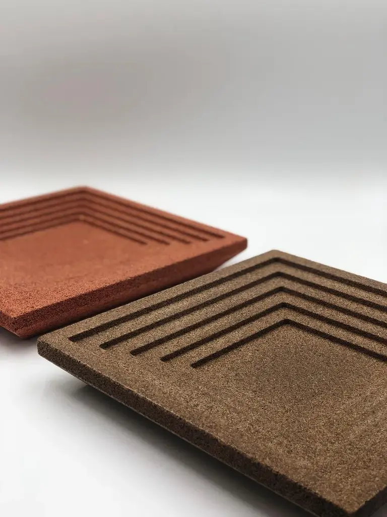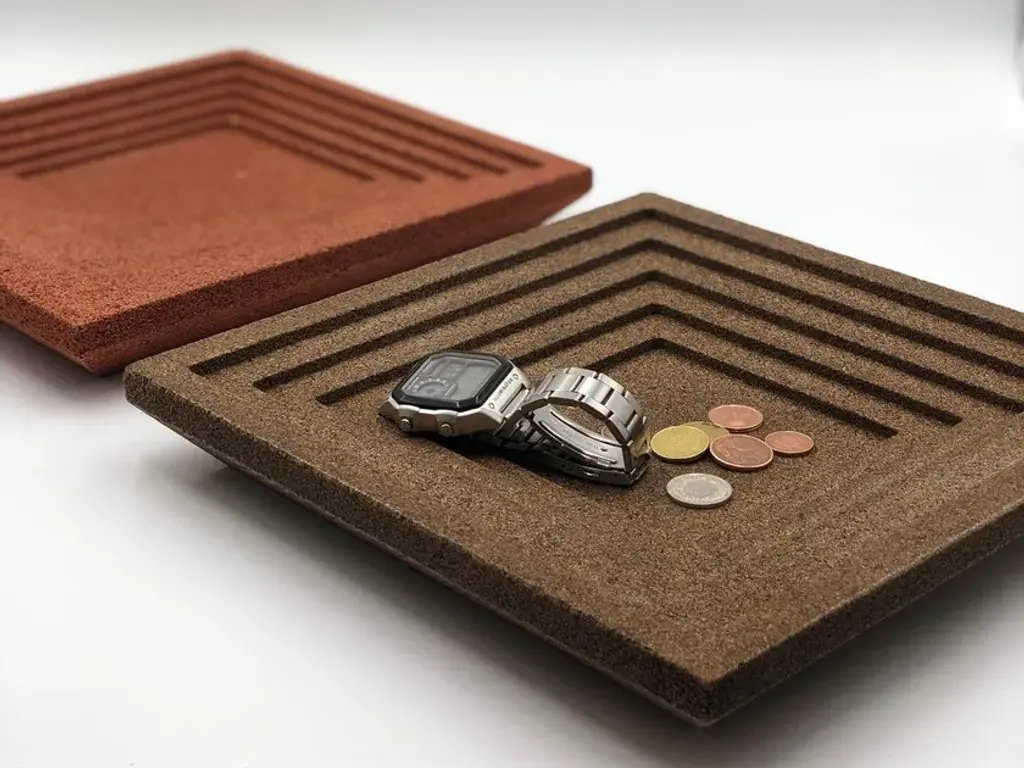 The harmony, delicacy and elegance of a drop of water, which as it falls generates small waves. Geometrica is a 100% natural cork tray, characterized by a progressive decrease in its height, which culminates in the center. Enveloping and soft, Geometric has been designed to contain multiple types of objects, from keys to fruit. Its minimal and linear nature makes it perfect for any space and environment, from the kitchen as a table centerpiece, to the bedroom above the bedside table at the entrance of your home as a tray for house keys. Geometric is available in different shapes: Round, Squared and XL.